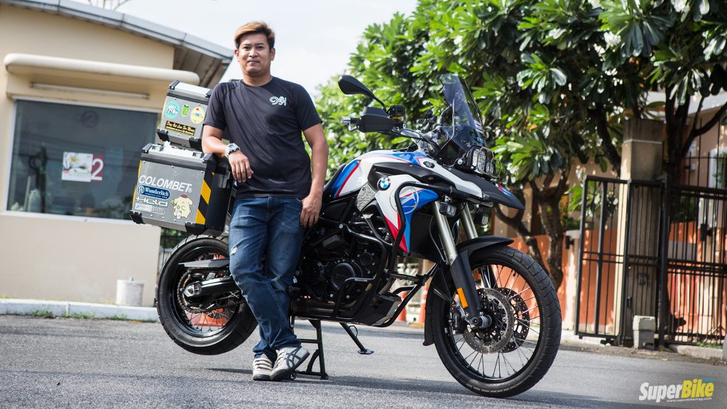 สวัสดีครับผมระพี พวงสุพาง ชื่อเล่นเกี๊ยก โดยส่วนตัวแล้วผมเป็นคนที่ชื่นชอบในความเร็ว มีงานอดิเรกเป็นการแข่งรถ ทั้งรถดริฟท์และเซอร์กิตครับ ส่วนสำหรับมอเตอร์ไบค์นั้นก็เช่นเดียวกัน โดยเริ่มมาจากวัยรุ่นที่ชอบความเร็วเคยได้ครอบครอง Ducati 848 มาก่อนเมื่อ 8 ปีที่แล้วซึ่งตอนนั้นเราสนุกสนานกับการที่ได้ขี่รถที่แรง ได้ไปถึงที่หมายให้ไวกว่าเพื่อนๆ พอมีอายุมากขึ้นจุดประสงค์การขับขี่ของตัวเองก็เปลี่ยนไป เริ่มสนุกกับการได้ดื่มด่ำไปกับทัศนียภาพข้างทาง เป็นการขับขี่ที่เน้นในการท่องเที่ยวเสียมากกว่า ก็เลยตัดสินใจเปลี่ยนแนวรถมาเป็นตระกูล GS ส่วนเหตุผลที่เลือก BMW F 800 GS