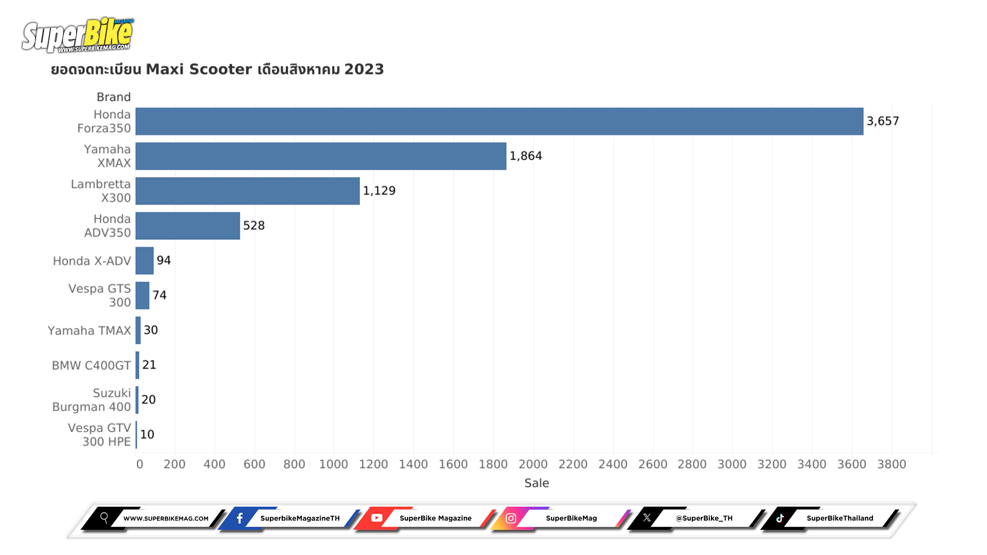ยอดจดทะเบียน Maxi Scooter ประจำเดือนสิงหาคม 2023
