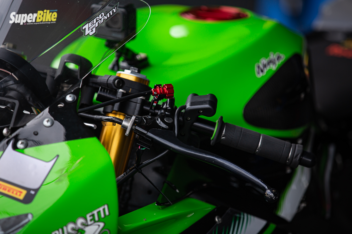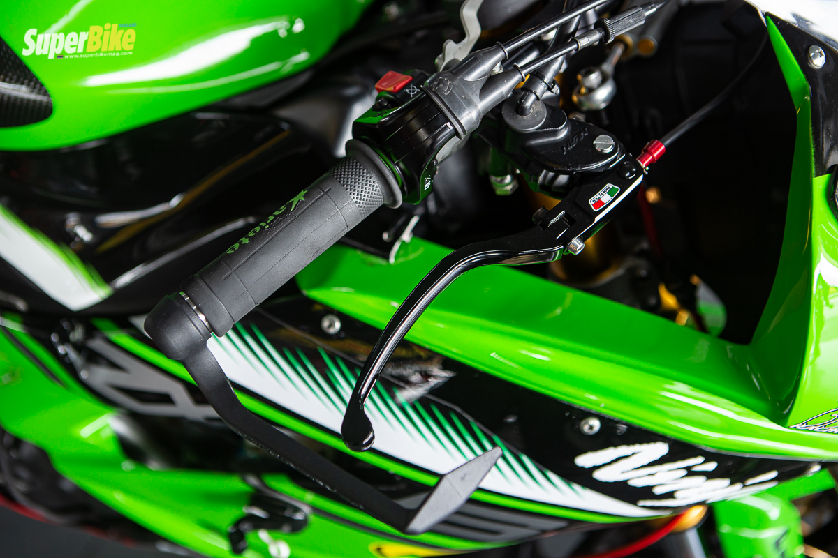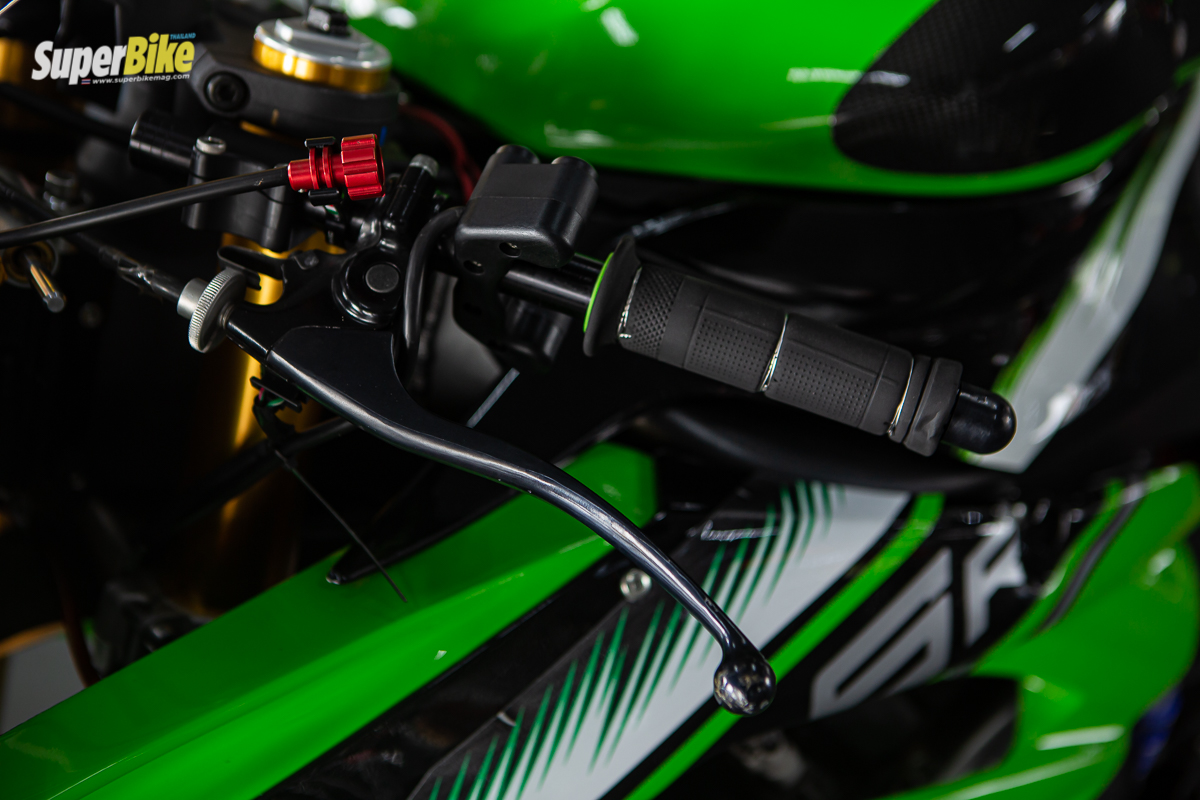 ก้านเบรกหน้า TWM พร้อมรีโมทปรับระยะเพียงเท่านี้ก็สามารถหยุดขุมพลังของ ZX-6R ได้อยู่หมัด ปลอกแฮนด์ Ariete รุ่น Aliram การ์ดเบรก หรือ การ์ดแฮนด์ GB Racing ระบบอากาศเลือกใช้กรองอากาศ DNA ซึ่งอากาศสามารถไหลผ่านได้อย่างเร็วดักฝุ่นได้ดีสามารถถอดล้างเคลือบได้ไม่จำกัดจำนวนครั้ง