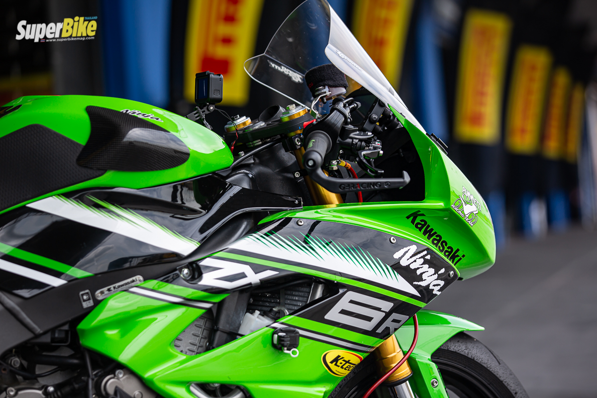 ซึ่งตอนที่ซื้อมานั้นเป็นรถเดิมๆ จนคุณหนุ่มมีโปรเจ็คจะทำรถคันนี้เพื่อขับเล่น Trackday ในสนามบ้างซึ่งจังหวะนั้นมีการจัดการแข่งขัน World Superbike 2018 ที่ประเทศไทย ทางผมเองก็ได้ร่วมงานกับทางทีมแข่ง Kawasaki Puccetti Racing ซึ่งเป็นทีมรองจาก Kawasaki และมีความชำนาญในการปรับจูนรถ ZX-6R มาก