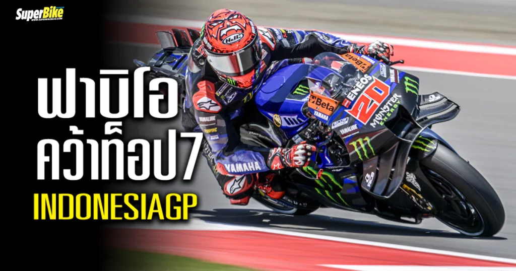 ฟาบิโอ กวาร์ตาราโร ยอดนักบิดเฟรนช์จาก มอนสเตอร์ ยามาฮ่า เดินหน้ายกระดับผลงานกับรถแข่ง M1 ไล่แซงคู่แข่งท้ายเรซคว้าอันดับ 7 ในศึก โมโตจีพี สนาม 15 2024 indonesiagp เมื่อวันอาทิตย์ที่ผ่านมา