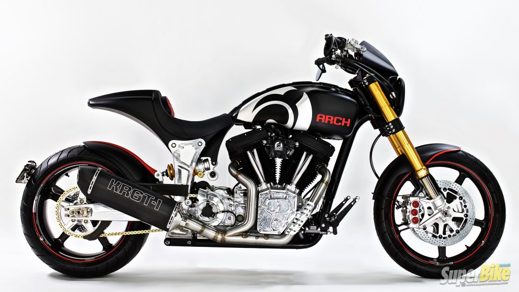 จุดเด่นๆ ก็คือ เครื่องยนต์วีทวินขนาด 2,032 ซีซี เฟรมโลหะพร้อมซับเฟรมอลูมิเนียม CNC โช้คหน้า Ohlins FGRT และโช้คหลังของ ARCH เอง ล้อใช้ล้อคาร์บอนไฟเบอร์ BST แบบ 5 ก้าน สามารถเลือกได้ว่าจะให้พักเท้าไปด้านหน้าหรือกลางตัวรถ ปรับแต่งรถให้เข้ากับลูกค้าแต่ละคนได้