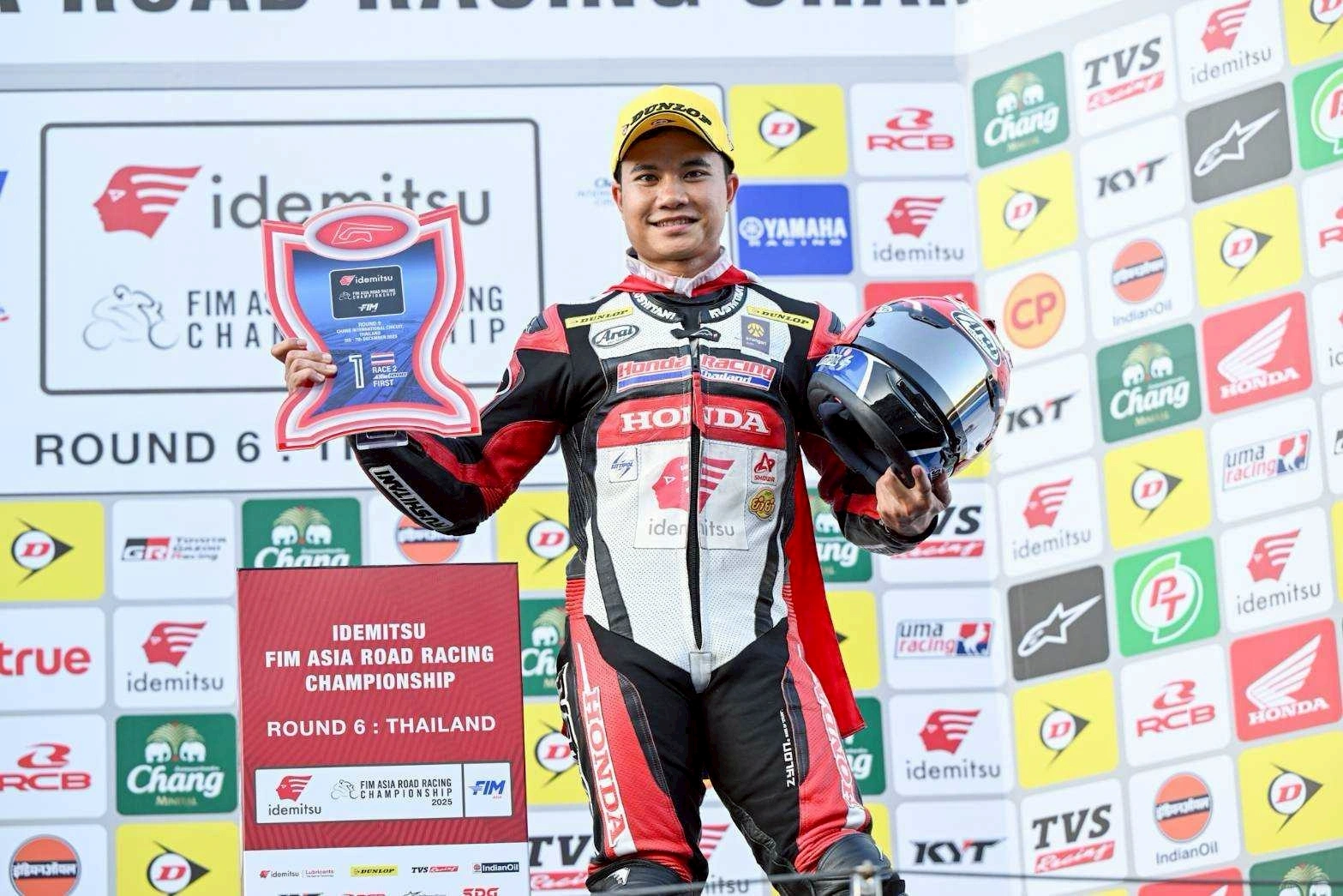 “ฮอนด้า เรซซิ่ง ไทยแลนด์” ได้สร้างประวัติศาสตร์และตอกย้ำศักยภาพความเป็นทีมแข่งชั้นนำของไทย ด้วยการระเบิดผลงานสุดยิ่งใหญ่กวาดรางวัล “ดับเบิ้ลวินเนอร์” ในการแข่งขัน FIM Asia Road Racing Championship (ARRC) 2025 สนามสุดท้าย เรซที่ 2 ณ สนามช้าง อินเตอร์เนชั่นแนล เซอร์กิต จังหวัดบุรีรัมย์ เมื่อวันอาทิตย์ที่ 7 ธันวาคม 2568 โดยทัพนักบิดไทยได้พาธงชาติไทยโบกสะบัดพร้อมเสียงเพลงชาติไทยกระหึ่มสนามโฮมเรซได้อย่างภาคภูมิ