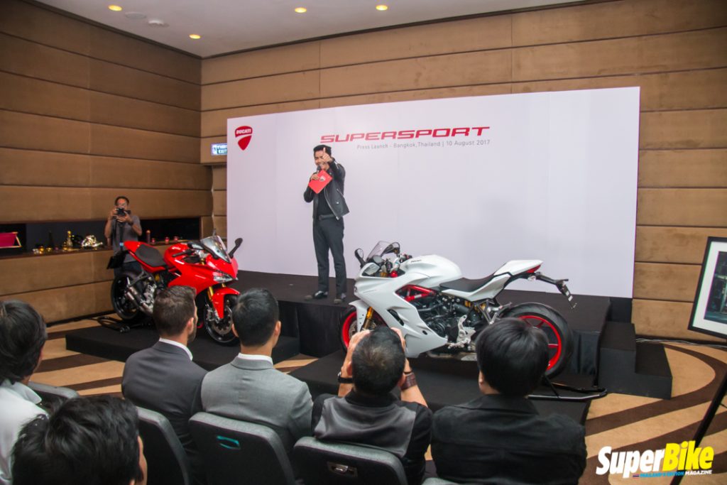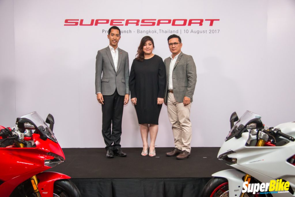 เมื่อวันที่ 10 สิงหาคมที่ผ่านมา ณ โรงแรม W กรุงเทพ ทาง บริษัท Ducatisti จำกัด หรือ Ducati Thailand ได้เปิดตัวรถ Ducati SuperSport รุ่นปี 2017 ที่มาพร้อมเทคโนโลยีล้ำสมัย โดยรถ SuperSport มีราคาอยู่ที่ 559,000 บาท และราคา 699,000 บาทสำหรับ SuperSport S สีแดง และราคา 709,000 บาทสำหรับ SuperSport S สีขาว โดย Ducati SuperSport รุ่นปี 2017 ภายใต้คอนเซปต์ Everyday Extraordinary ที่ให้คุณปลุกสัญชาตญาณแห่งความสปอร์ตสุดเร้าใจได้ทุกวัน และยังคงรักษา DNA ของความเป็นรถสปอร์ตที่คล่องตัว