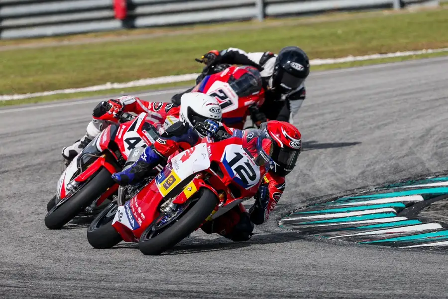 “เฟอร์” ปัญจรุจน์ จิตวิรุฬห์ฉัตร เจ้าของรถแข่ง Honda CBR250RR หมายเลข 12 ต้องเจอกับงานยากตั้งแต่ออกตัว เมื่อผลการควอลิฟายทำให้เขาต้องออกสตาร์ตจากกริดที่ 11 ในแถวที่ 4 อย่างไรก็ตาม ทันทีที่สัญญาณไฟแดงดับลง นักบิดไทยอาศัยจังหวะและการเดินคันเร่งที่เฉียบคม ค่อยๆ ไล่แซงนักบิดเจ้าถิ่นและคู่แข่งระดับท็อปของเอเชียขึ้นมาอยู่ในกลุ่มผู้นำได้อย่างรวดเร็ว