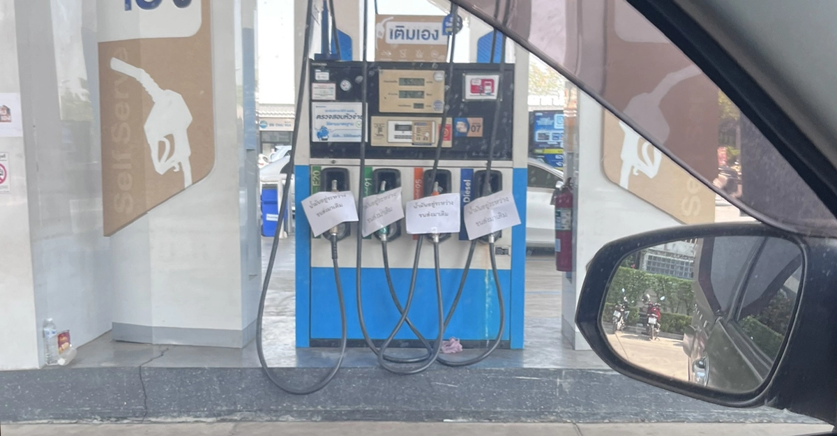 เพื่อพิสูจน์ข้อเท็จจริง ทีมงานของเราได้ตัดสินใจขับรถลงพื้นที่เพื่ออัปเดตสถานการณ์จริงบนหน้าลาน โดยเริ่มต้นเกาะติดเส้นทางจากสถานีบริการ ปตท. พัฒนาการ ขับเรื่อยยาวไปจนถึงโซนประเวศ และทะลุออกไปยังเส้นสุขาภิบาล ผลลัพธ์ที่ปรากฏต่อสายตาคือความชะงักงันของระบบค้าปลีกพลังงาน สถานีบริการแบรนด์หลักเกือบทุกแห่งมีสภาพเงียบเหงาผิดปกติ กรวยยางสีส้มถูกนำมาตั้งสกัดขวางทางเข้าออกทุกช่องทาง พร้อมกับข้อความประกาศว่า มันหมดรอข่นส่งมาเติม ถังเก็บใต้ดินถูกสูบออกไปจนเกลี้ยง และต้องระงับการให้บริการชั่วคราว