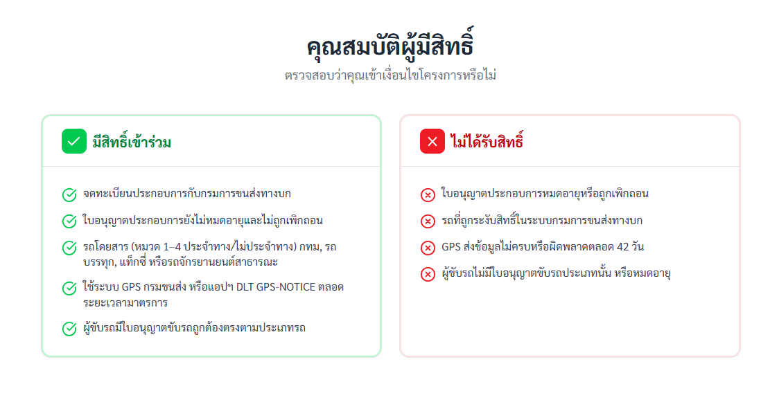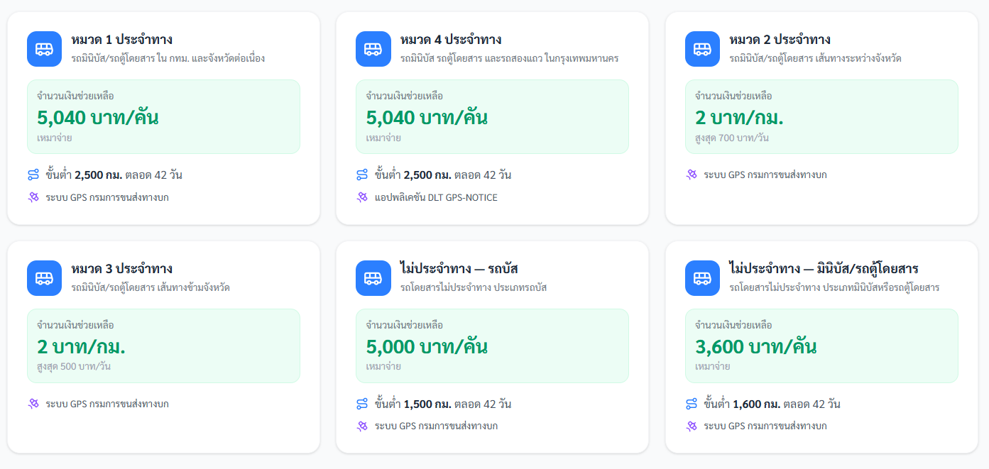 สรุปคุณสมบัติผู้มีสิทธิ์ได้รับเงินช่วยเหลือตามประเภทรถ