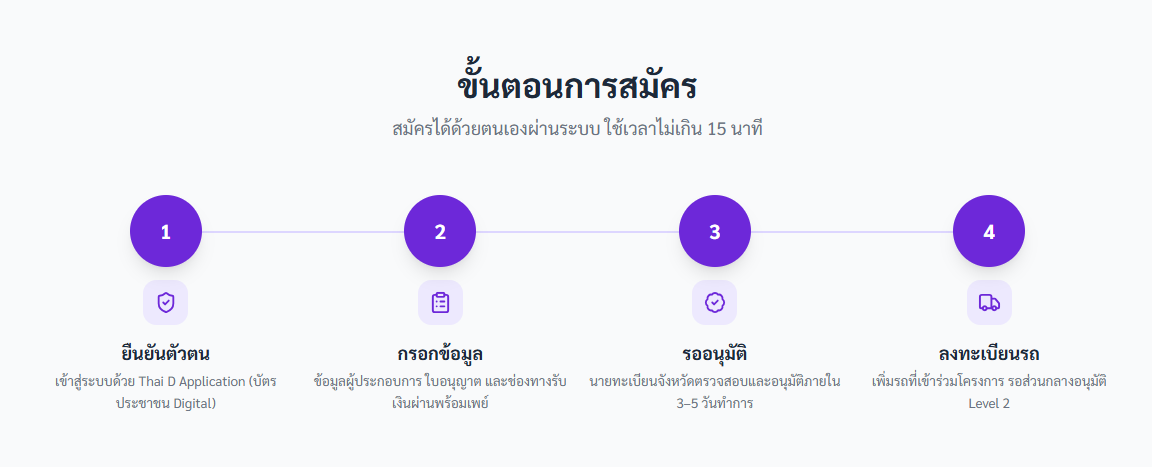 ลงทะเบียนผ่านแอปพลิเคชันที่กระทรวงพลังงานกำหนดเพื่อเชื่อมโยงข้อมูลกับทะเบียนรถของกรมการขนส่งทางบก