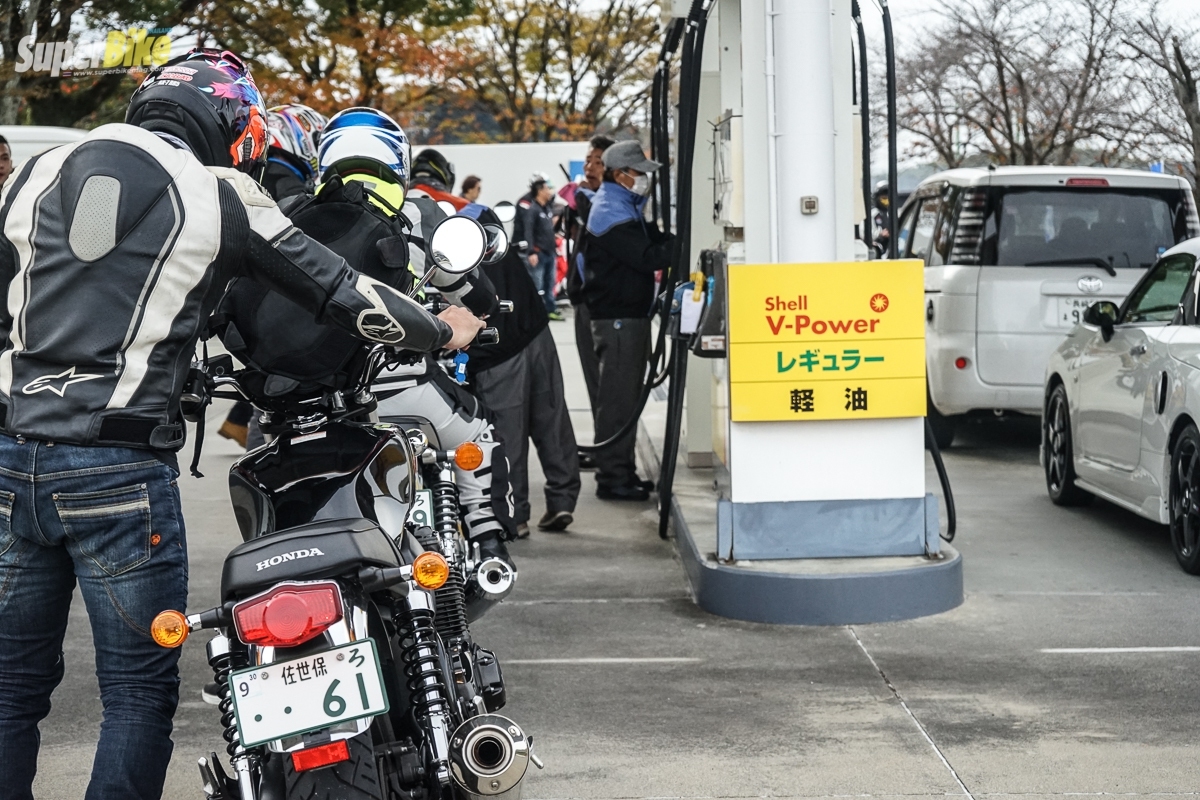 เอาจริงๆ สวยทุกมุม ทุกจุด ตู้น้ำกดๆ ยังถ่ายรูปเลย กลุ่มของพวกเราได้รับความสนใจกับคนญี่ปุ่นอย่างมากเพราะ เป็นกลุ่มคนที่ขี่รถมาเที่ยวมากที่สุด และก็เป็น CB1100 หมดทุกคัน เวลายังคงเดินเรื่อยๆ แม้เราจะอยากอยู่ชมความงามต่อ แต่เราต้องไปก่อนฟ้าจะมืด ฤดูหนาวที่ญี่ปุ่นนั้นพระอาทิตย์ตกค่อนข้างจะไวห้าโมงครึ่งฟ้าก็มืดแล้ว ดังนั้นเพื่อความปลอดภัยจึงต้องรีบเข้าที่พัก