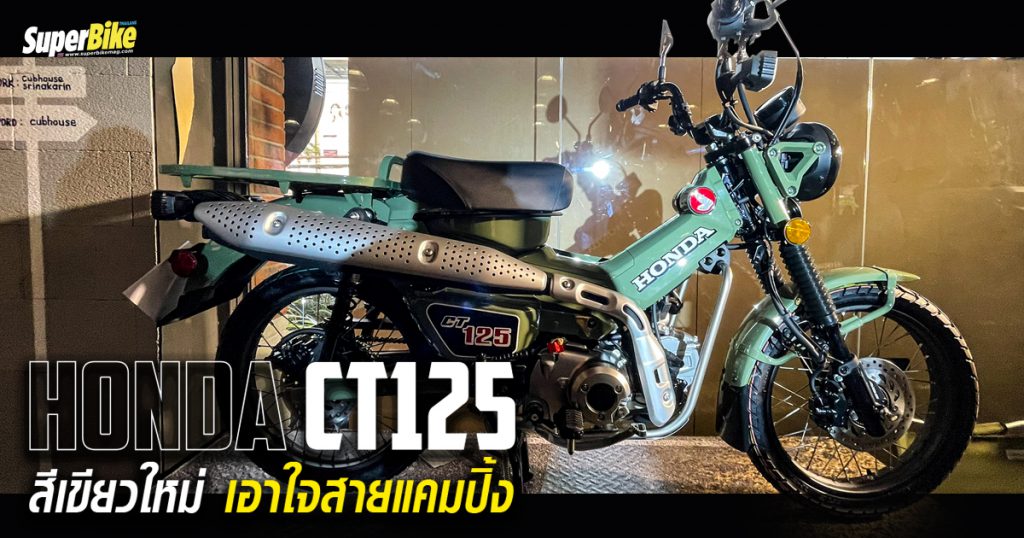 ก็ยังได้ทำการเปิดตัว Honda CT125 สีใหม่ แม้ว่าจะไม่ได้มีการเปลี่ยนแปลงในส่วนของรายละเอียดทางเทคนิค แต่สีเขียว Safari Green นี้ก็ตอกย้ำไลฟ์สไตล์สายลุย ปลุกจิตวิญญาณแห่งการผจญภัยให้กับผู้หลงใหลการแคมปิ้ง
