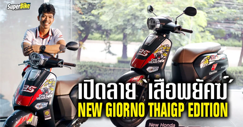 ไทยฮอนด้า เอาใจแฟนพันธุ์แท้มอเตอร์สปอร์ต เปิดตัวรถลายพิเศษ 2 รุ่น ได้แก่ “New Honda Giorno+ Moto2 ThaiGP 2024 Limited Edition” ผลิตจำนวนจำกัดเพียง 35 คันในโลกเท่านั้นโดยได้นำเสนอลวดลายที่สะท้อนจากรถแข่งที่ “ก้อง-สมเกียรติ จันทรา” จะใช้ลงแข่งล่าแชมป์ในไทยจีพี 2024 นี้