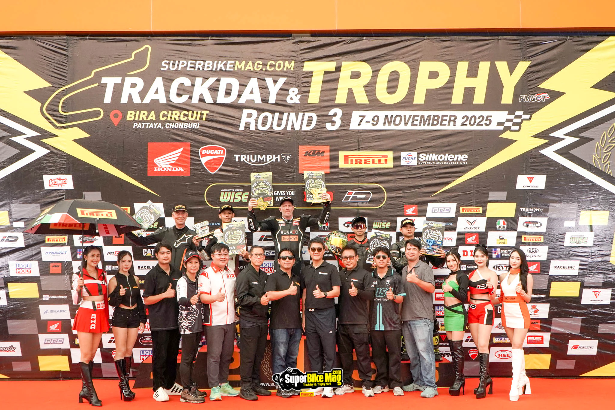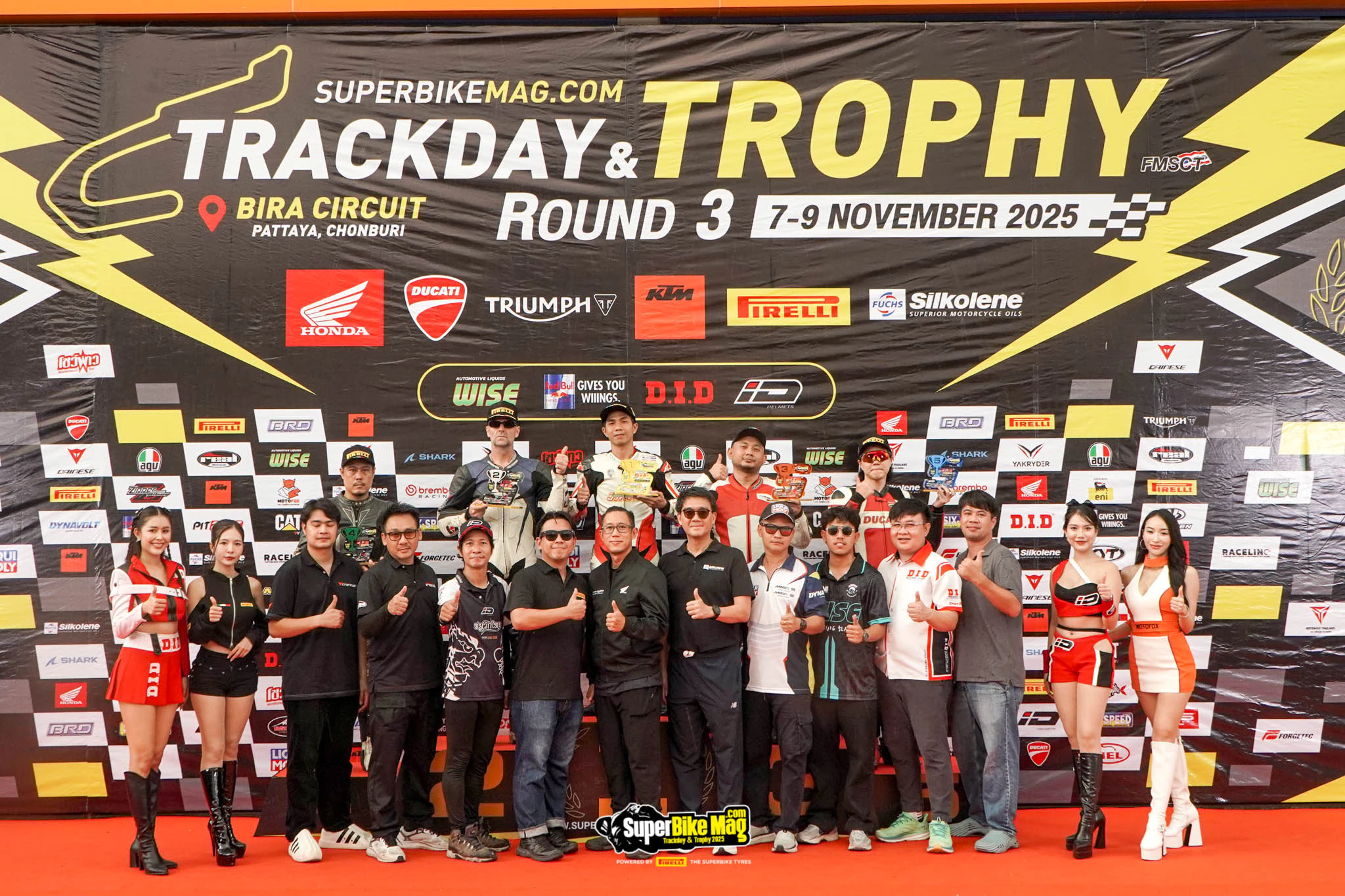 และแล้วก็จบกันไปสำหรับกิจกรรม SuperBikeMag Trackday & Trophy R.3 2025 งานแห่งความมันส์ประจำปี และต้องขอแสดงความยินดีกับผู้ที่ได้รับรางวัลการแข่งขันทั้ง 2 คลาส 3 รุ่น รวมถึงแชมป์ประจำปีที่สามารถคว้าถ้วยมงกุฏจาก SuperBikeMag Trackday 2025 ไปได้ เหมาะสมกับความสามารถที่ใคร ๆ นั้นต่างให้กับยอมรับ และต้องขอขอบคุณไทย ฮอนด้า ที่การสนับสนุนมาอย่างดีกับการพาลูกค้ากว่าจำนวนนับร้อยมาร่วมจอยความสนุกตลอดทั้งปีและทุก ๆ ปี