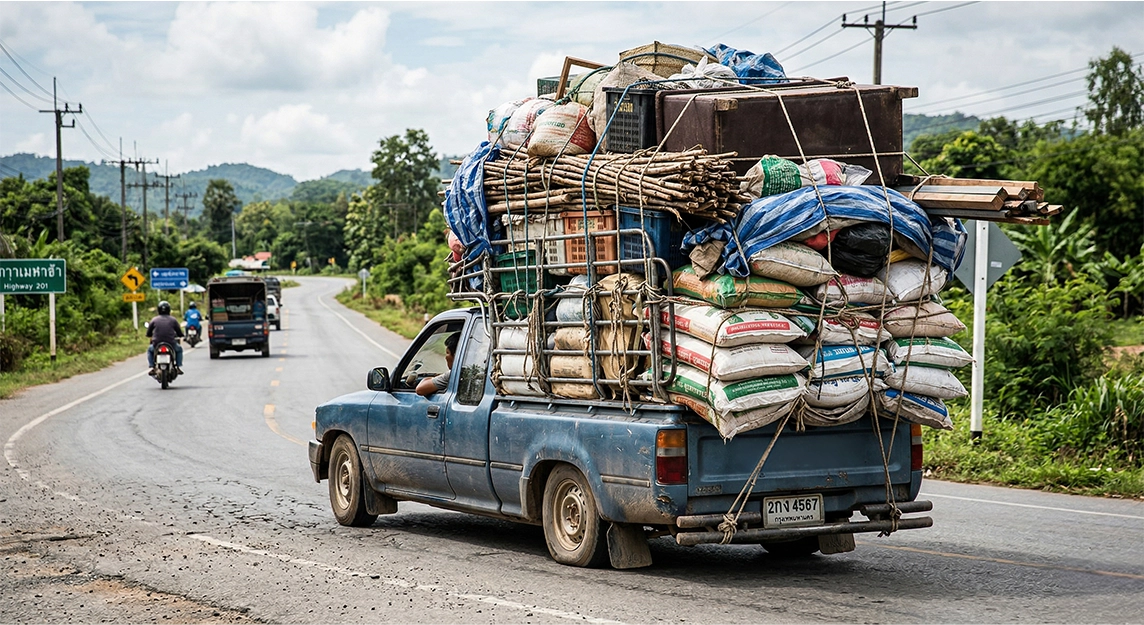 2. การบรรทุกน้ำหนักเกินพิกัด (Overloading) ในช่วงสงกรานต์ 2569 ประประชาชนจำนวนมากนิยมบรรทุกของฝากและสมาชิกเต็มคันรถเพื่อกลับต่างจังหวัด การแบกน้ำหนักที่เกินกว่าพิกัดที่ยางระบุไว้ (Load Index) จะทำให้แก้มยางรับภาระหนักและเกิดความร้อนสะสมสูงขึ้นอย่างรวดเร็ว ยิ่งวิ่งด้วยความเร็วสูงต่อเนื่อง ความร้อนจะยิ่งพุ่งสูงจนถึงขีดจำกัดของยาง