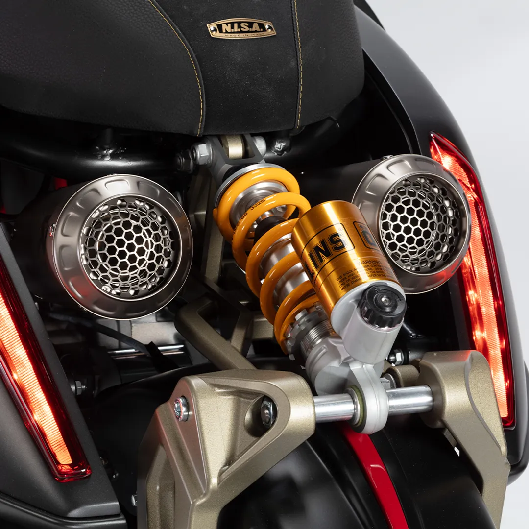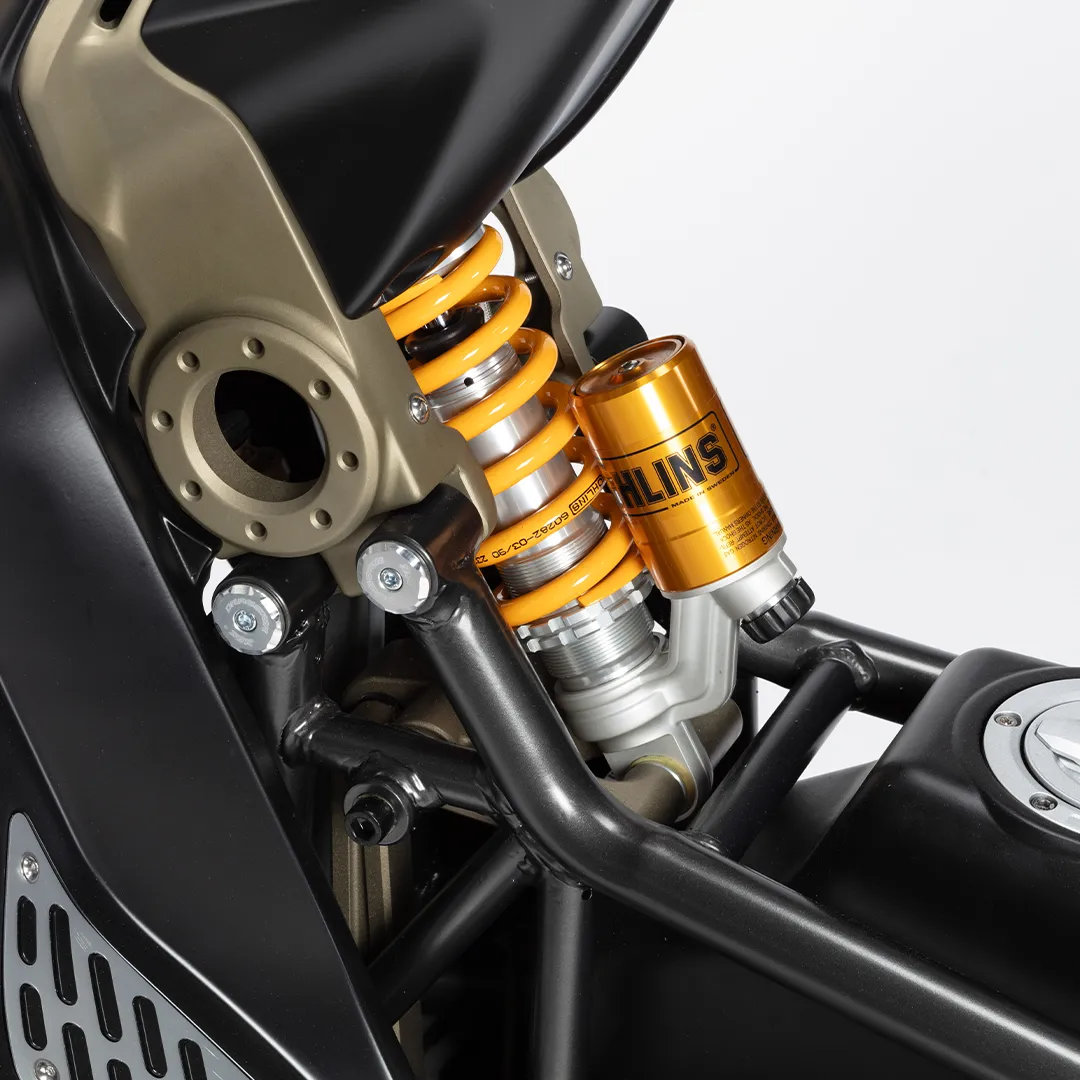 ระบบกันสะเทือนหน้า สวิงอาร์มแขนเดี่ยว พร้อมโช้คอัพ Öhlins