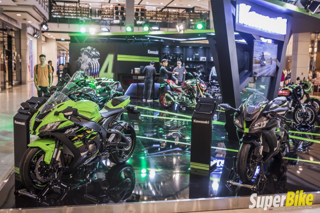 โดยบรรยากาศภายในบูธ นั้นถูกอัดแน่นไปด้วยมอเตอร์ไบค์เครื่องยนต์ 4 สูบ อาทิเช่นจากตระกูล Ninja ได้แก่ Ninja H2 SX SE สปอร์ตทัวร์เรอร์ที่จะเพิ่มความเร้าใจในการเดินทางของคุณกับขุมพลังซูเปอร์ชาร์จ ตามมาด้วย Ninja ZX10R SE รถซูเปอร์สปอร์ตสมรรถนะสูง ครบเครื่อง คลอบคลุมทุกการใช้งาน