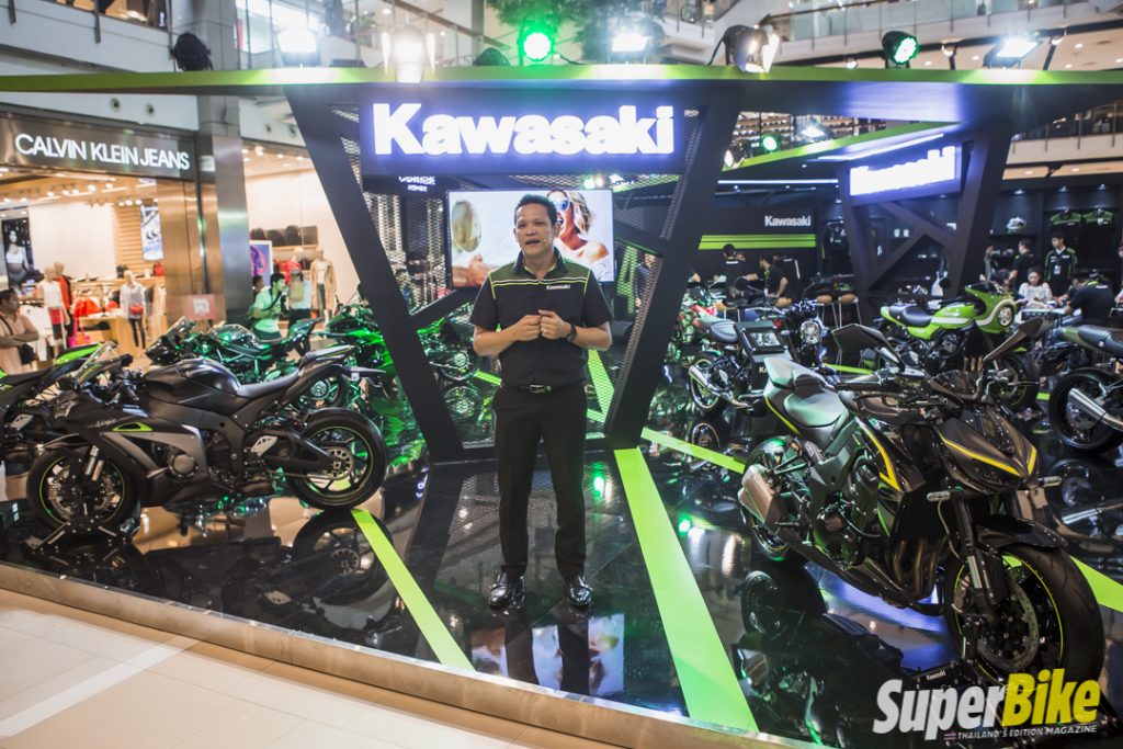 คุณกฤษณะ ภาคีแพทย์ ผู้จัดการอาวุโสฝ่ายขายและการตลาด กล่าวว่า “ในปีนี้ Kawasaki มีความพร้อมอย่างยิ่งในการแสดงศักยภาพของรถมอเตอร์ไบค์ โดยการันตีจากตำแหน่งแชมป์โลก 3 สมัยกับรายการแข่งขัน World Super Bike Championship ที่ “โจนาธาน เรีย” โชว์ผลงานที่ยอดเยื่ยมมาอย่างต่อเนื่อง