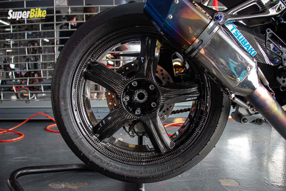 ต่อด้วยล้อเบาๆ อีกสัก 1 คู่ล้อคาร์บอน Rotobox Boost คู่กับยางแบรนด์ยอดฮิตอย่าง Pirelli ลายสายฟ้าหน้า-หลังไล่เบาครบสูตรจริงๆ คู่นี้