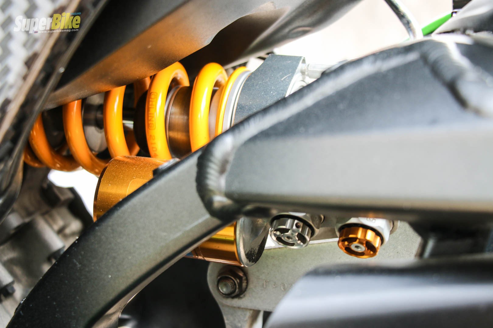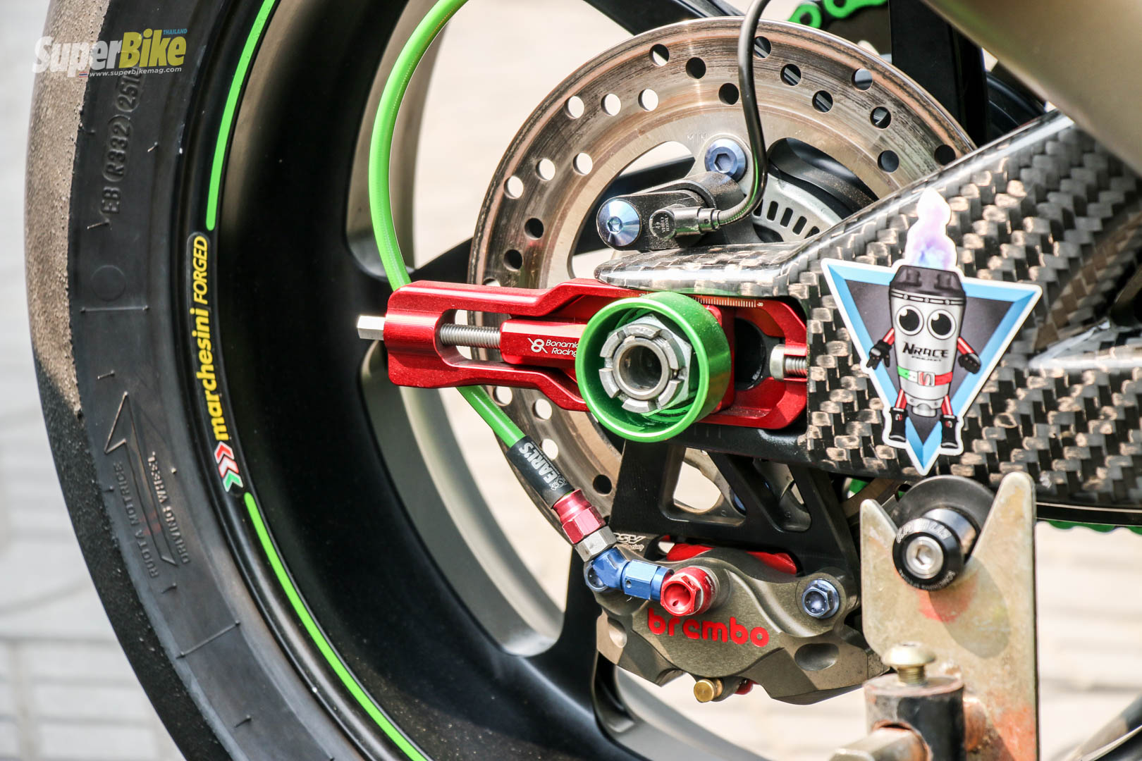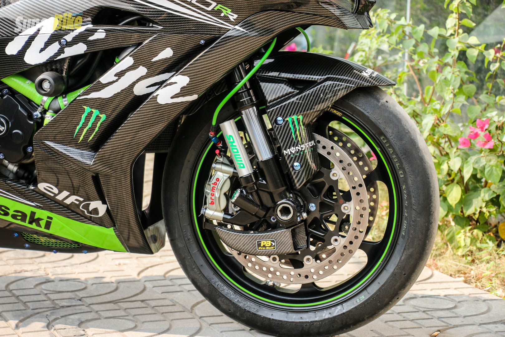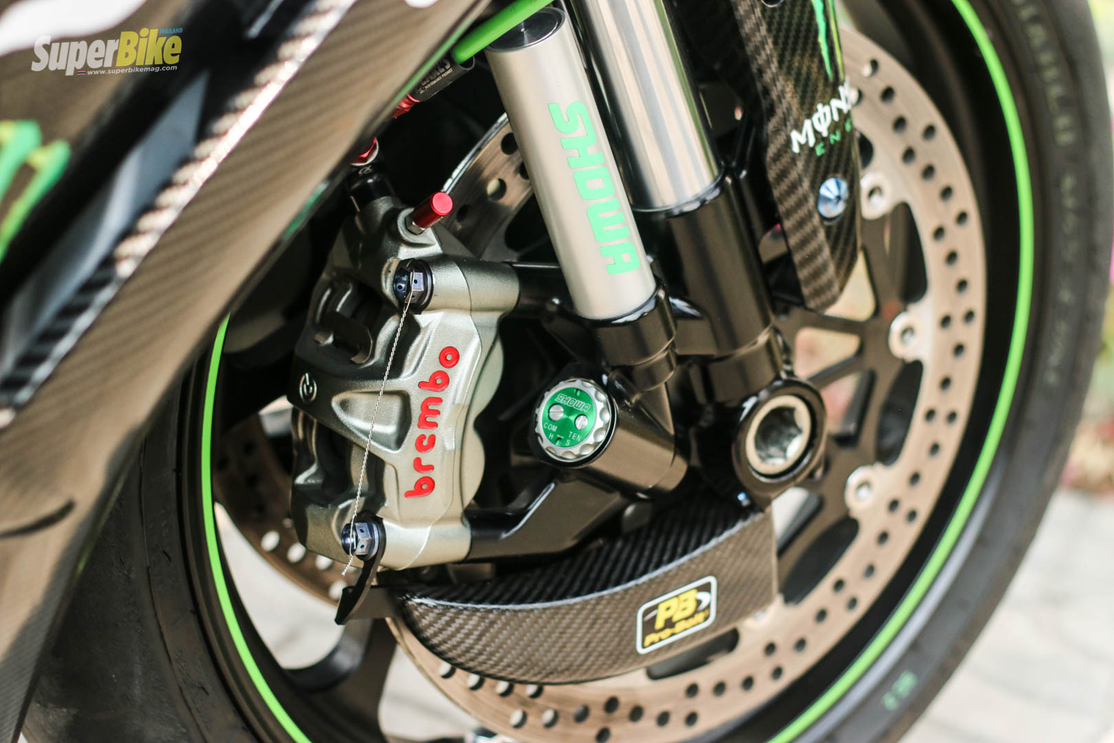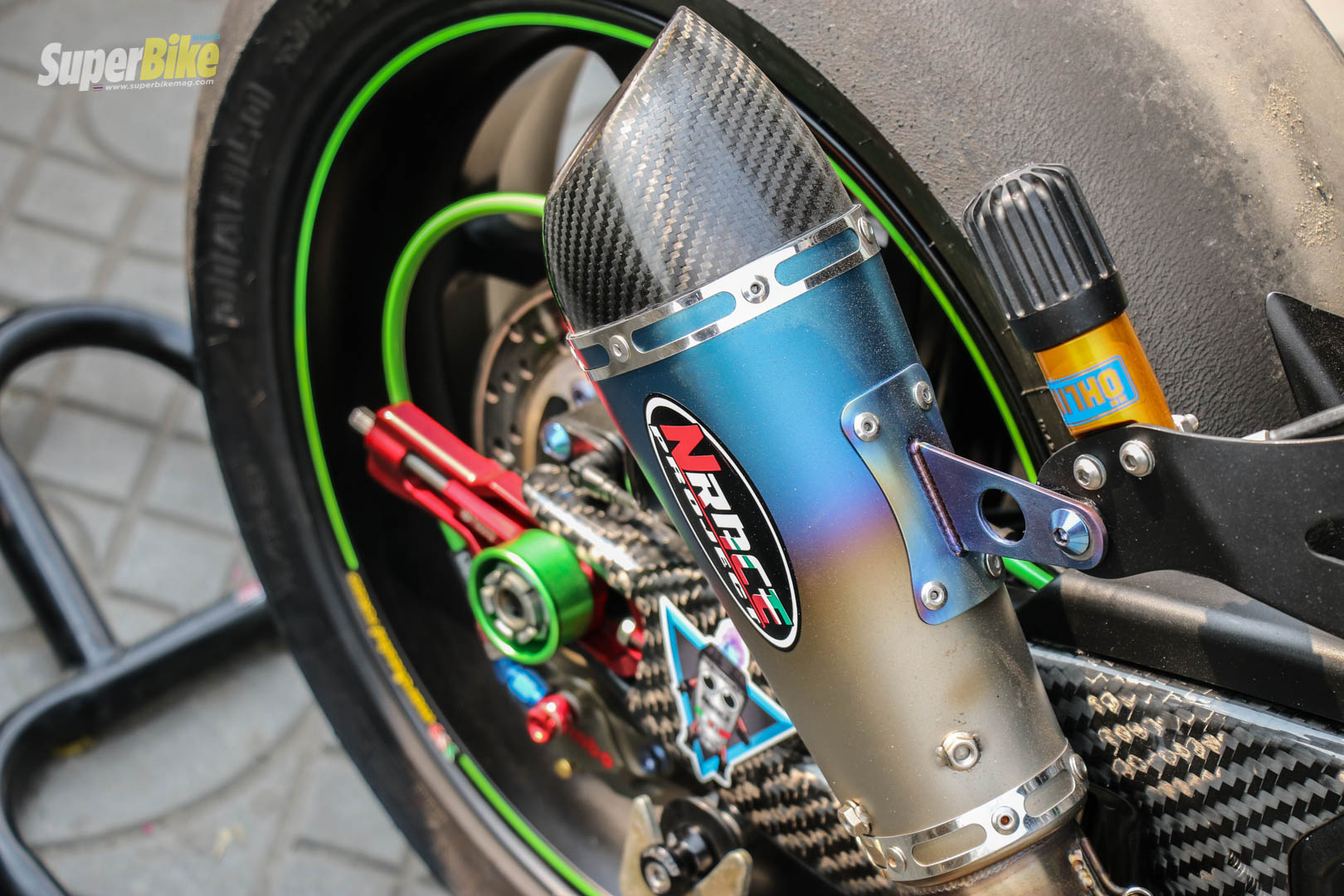 ท่อสูตร NRace Project , OHLINS TTX GP For ZX10 ส่วนสายเขียวๆเป็นสายเบรกเต็มระบบจาก EARL’S
