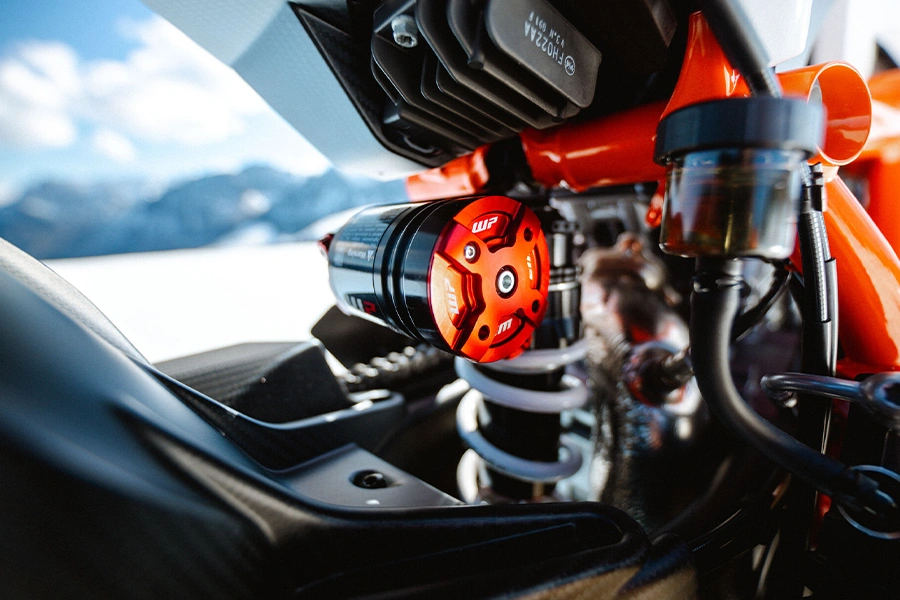 เพื่อให้การควบคุมม้า 190 ตัวเป็นไปอย่างแม่นยำ KTM ได้จัดเต็มชุดระบบกันสะเทือนระดับท็อปจาก WP: