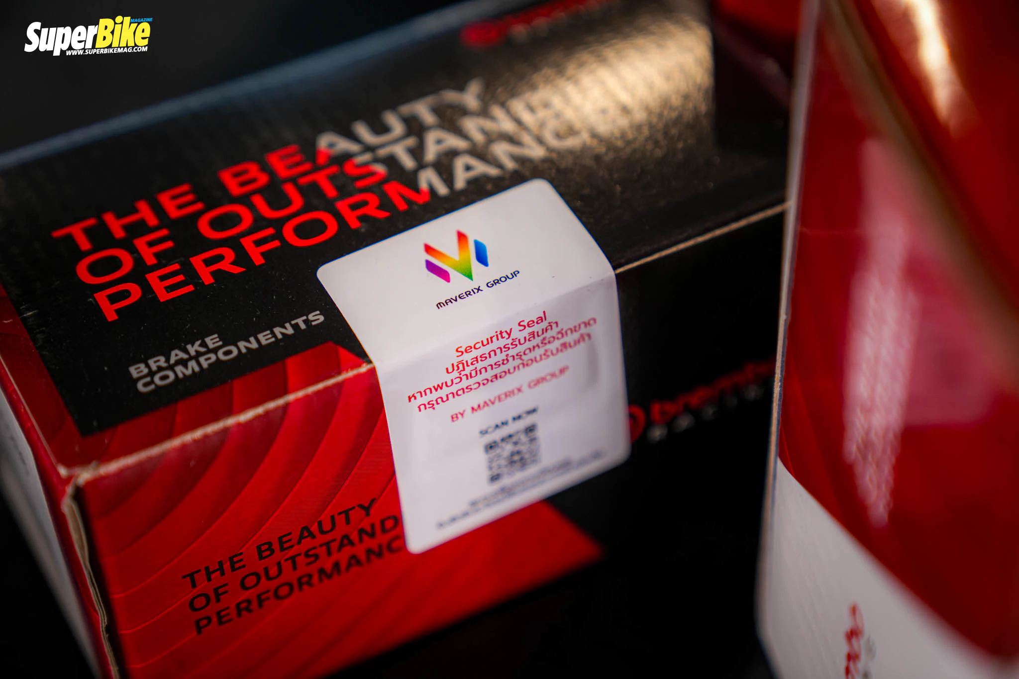 หากท่านไหนได้ทำการซื้อผลิตภัณฑ์จากทาง Brembo Racing จะพบกับ Security Seal ที่กล่องหรือสติกเกอร์ที่มีตราโลโก้ มาเวอร์ริค กรุ๊ป ประดับพร้อมบาร์โค้ดเพื่อแอดไลน์ ลงทะเบียนใส่รหัสสินค้าเพื่อรับสิทธิ์รับประกันสินค้า 6 เดือนรวมถึงการบริการหลังการขาย และมั่นใจได้ว่าผลิตภัณฑ์คาลิเปอร์ Brembo Racing เป็นของแท้ 100% สามารถสังเกตโลโก้ซีเรียลโค้ดนัมเบอร์ด้านข้างคาลิเปอร์ ซึ่งจะไม่บดบังความสวยงามเมื่อติดตั้งไปแล้วนั่นเอง