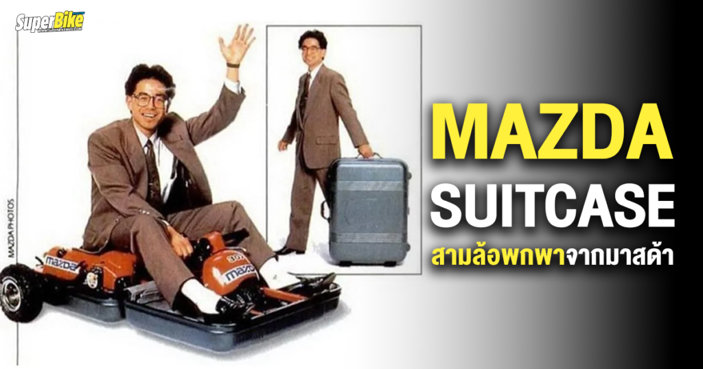 Mazda Suitcase อีกหนึ่งสิ่งประดิษฐ์ที่น่าสนใจจากประเทศญี่ปุ่น โดยค่ายรถชื่อดังอย่าง ‘มาสด้า’ ได้เกิดไอเดียนำกระเป๋าเดินทางที่สามารถกลายร่างเป็นยานพาหนะได้ ซึ่งกระเป๋าเดินทางใบนี้เป็นผลงานที่กลุ่มคนในบริษัทพัฒนาขึ้นเมื่อปี 1991 แนวคิดของมันถูกสร้างขึ้นมาคล้าย ๆ กับ MotoCompacto จากทาง Honda คือถูกสร้างขึ้นมาเพื่อแก้ปัญหากับการขับขี่ไปในเมืองที่ไม่ว่าจะเป็น ปัญหารถติด หรือปัญหาการหาที่จอดยากโดยทางผู้คิดค้นเชื่อว่ายานพาหนะคันนี้จะสามารถตอบโจทย์ได้