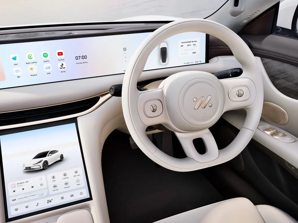จุดเด่นที่ทำให้ MG IM5 แตกต่างคือ ระบบเลี้ยวล้อหลัง (Rear-axle Steering) ที่ทำงานร่วมกับระบบช่วงล่างอัจฉริยะ ช่วยให้รถที่มีความยาวเกือบ 5 เมตร สามารถเลี้ยวกลับรถได้ในที่แคบอย่างง่ายดาย นอกจากนี้ยังมีหน้าจอภายในแบบ Ultra-wide ขนาด 26.3 นิ้ว ลากยาวเกือบเต็มหน้าปัด และระบบขับเคลื่อนอัตโนมัติที่ประมวลผลผ่านชิปทรงพลัง