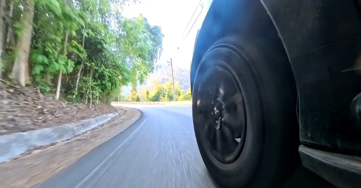 ผลปรากฏว่า “ไม่มีเสียงยางร้องเอี๊ยด” เล็ดลอดออกมาให้ได้ยินเลยแม้แต่โค้งเดียว ทั้งๆ ที่ในใจลึกๆ ของทีมงานเตรียมตัวเตรียมใจลุ้นว่ามันต้องมีเสียงกรีดร้องของหน้ายางให้ได้ยินแน่ๆ ด้วยน้ำหนักรถระดับสองตัน แต่ทุกอย่างกลับเงียบกริบ ได้ยินเพียงเสียงรอบเครื่องยนต์ที่คำรามและเสียงเพลงที่เปิดคลอในรถตอนขาลงเท่านั้น ถือเป็นการลบภาพจำในอดีตที่หลายคนมักเชื่อว่า ยางที่เน้นความนุ่มเงียบมักจะมีแก้มยางที่ย้วย และเข้าโค้งได้ไม่ดีไปจนหมดสิ้น