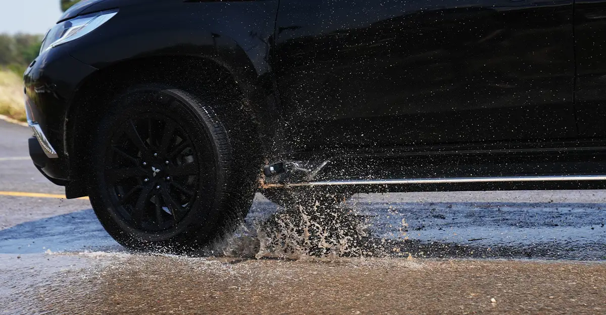 มาถึงไฮไลต์สำคัญของการ รีวิว Michelin Primacy 5 เนื่องด้วยช่วงที่เราทำการทดสอบตกอยู่ในช่วงกลางเดือนเมษายนที่แสงแดดแผดเผา อุณหภูมิพุ่งทะลุ 40+ องศาเซลเซียส โอกาสที่เราจะเจอฝนตกตามธรรมชาตินั้นแทบจะเป็นศูนย์เปอร์เซ็นต์ เพื่อไม่ให้การทดสอบขาดความสมบูรณ์ ทีมงานจึงตัดสินใจแก้ปัญหาด้วยวิธีสุดดิบและลงทุนขั้นสุด คือการว่าจ้างรถบรรทุกน้ำขนาดใหญ่ ขนน้ำมากว่า 6,000 ลิตร มาฉีดราดลงบนทางโค้งของถนนชนบทแห่งหนึ่ง เพื่อจำลองสถานการณ์ถนนเปียกลื่นขั้นสุด