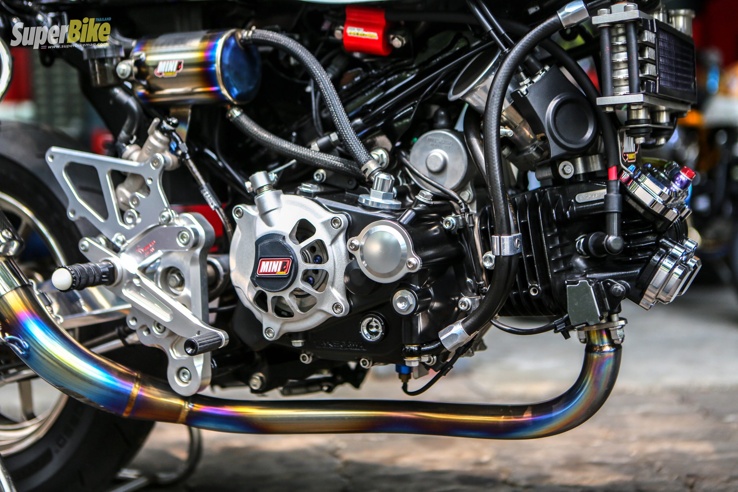 สิ่งที่ขาดไม่ได้เลยสำหรับเครื่องยนต์วิ่งนั้นก็คือ การระบายความร้อนด้วยออยคูลเลอร์ Mini Products และมีการโมดิฟายถังดักไอน้ำมัน เพิ่มขึ้นอีกด้วย สำหรับเครื่องยนต์นั้นผมถือว่าเป็นรถ มังกี้ที่สมบูรณ์ที่ตอนนี้ก็ว่าได้