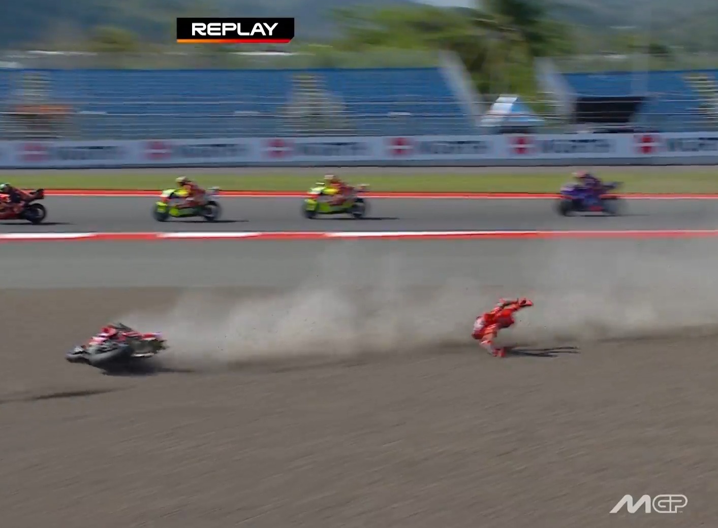 ในการแข่งขัน MotoGP ฤดูกาล 2025 ในสนามที่ 18 ของฤดูกาลที่ไปลงทำการแข่งขันกันที่สนามมันดาลิก้า ประเทศอินโดนีเซีย ในรายการ Pertamina Grand Prix of Indonesia เหมือนจะเป็นสนามที่เป็นของแสลงสำหรับแชมป์โลกคนปัจจุบันอย่างมาร์ก มาร์เกซ อยู่ไม่น้อย หลังเจ้าตัวพลาดท่าเกิดอุบัติเหตุตั้งแต่เริ่มการแข่งขันในรอบของเมนเรซเนื่องจากโดนมาร์โก เบซเซคคี่ นักแข่งจากทีมโรงงานอาพริเลียชนเข้าที่ด้านท้ายทำให้ทั้งคู่ต้องออกจากการแข่งขันไปอย่างน่าเสียดาย