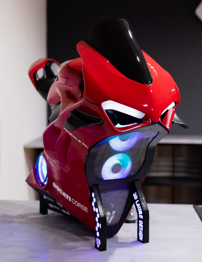 และเหล่าไบค์เกอร์ที่มีความเป็นเกมเมอร์ในคอลลัมน์นี้ขอแนะนำให้รู้จักกับ ‘Panigale PC’ เคสคอมพิวเตอร์ที่มีรูปร่างหน้าตาถอดแบบมาจาก Ducati Panigale V4R เมื่อเว็บไซต์ 3D Laure Design เว็บไซต์เกี่ยวกับอุปกรณ์ตกแต่งรถจักรยานยนต์ที่ผลิตเน้นการผลิตชิ้นงานจากเครื่อง 3D Print ก็เกิดไอเดียสุดบรรเจิด ได้ทำการสร้างผลิตภัณฑ์ที่เอาใจแฟน ๆ คูคาติโดยเฉพาะ โดยทำการออกแบบเคสคอมพิวเตอร์แบบตั้งโต๊ะที่มีรูปทรงได้รับแรงบันดาลใจมาจาก Ducati Panigale V4R โดยชิ้นงานนี้ใช้เวลาออกแบบนานถึง 1 ปี และใช้เวลาการสร้างมากถึง 7 เดือน