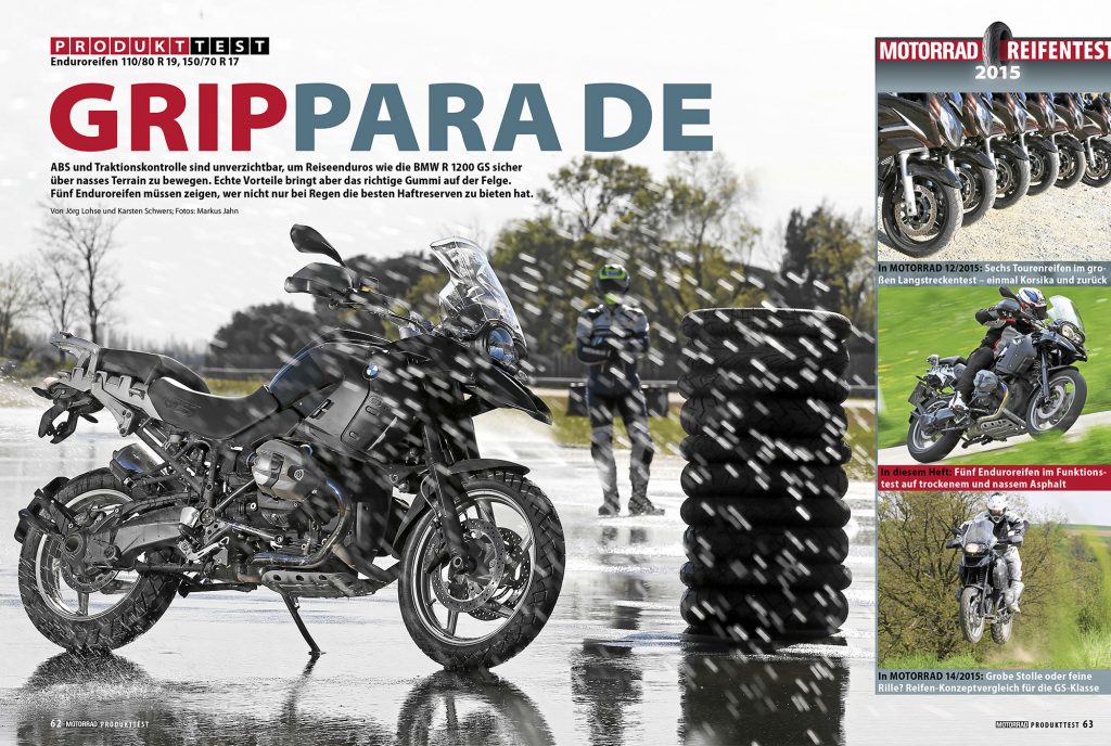 ในเล่มที่ 13/2015 นิตยสารเยอรมันได้มีการเปรียบเทียบ ยาง The Scorpion Trail II กับ Metzeler Tourance Next, Dunlop Trailsmart, Continental Trail Attack 2 and Michelin Anakee III. ในบทความได้ระบุบไว้ว่า Bridgestone Battlax A40 ไม่ได้รวมอยู่ในการทดสอบนี้เพราะมันก็ไม่มีอยู่ในเวลาของการทดสอบ ยางทั้งหมดใช้ยางหน้า 110/80 R 19 และยางหลัง 150/70 R 17 ทั้งหมดทดสอบการจัดให้ รถ BMW R 1200 GS (R12) ทั้ง 6 คน