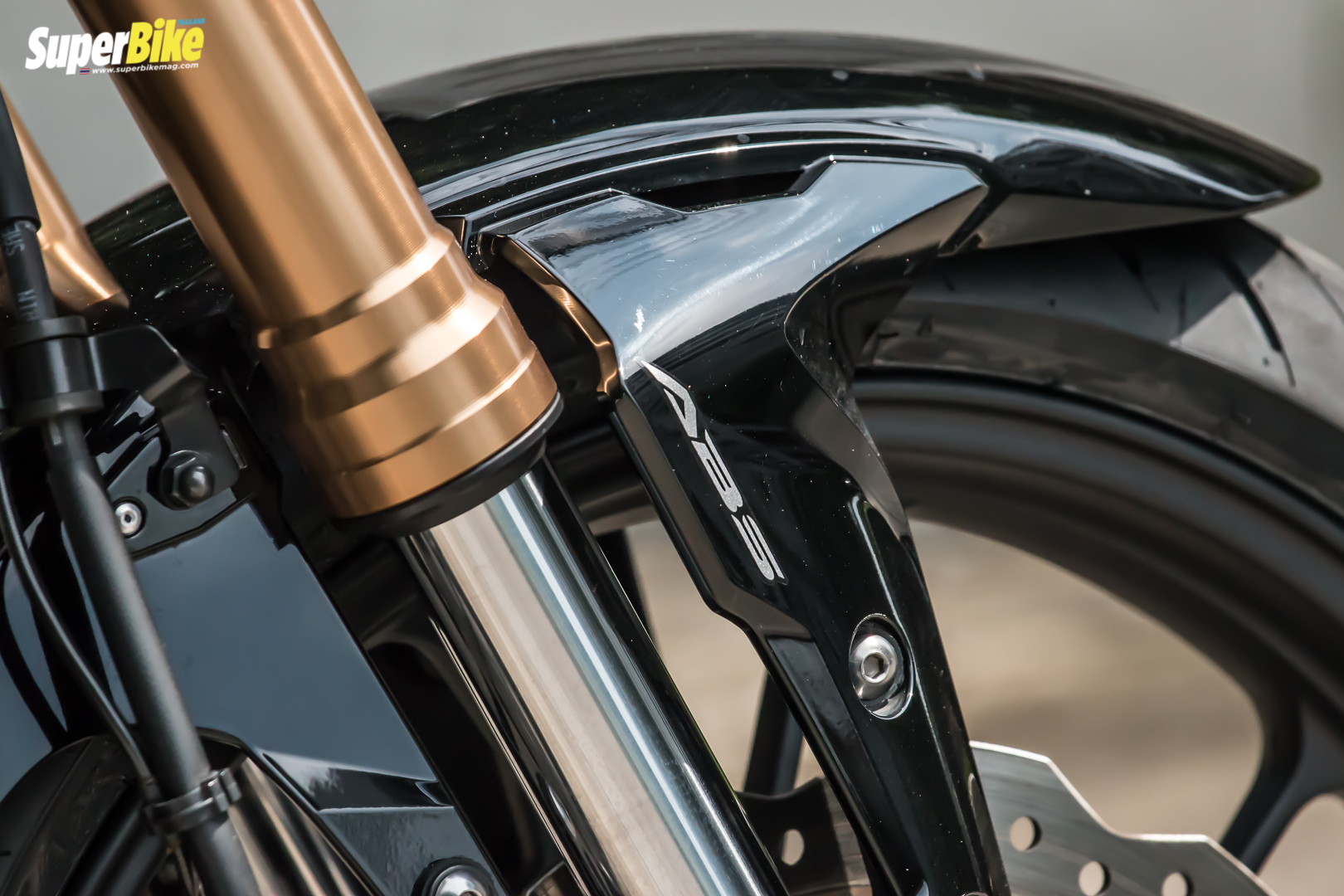 มาต่อที่โช้คหน้า ที่เป็นจุดเด่นสง่าสีทอง แบรนด์ดังอย่าง SHOWA ที่เป็นแบบ UPside-down ขนาด 41 มม. และ โช้คหลังเดี่ยวที่สามารถปรับพรีโหลดได้ 7 ระดับ เฟรมถักที่ทำให้ดูเพียวร่างบางเบาแข็งแรง ดูทันสมัยสวยงาม