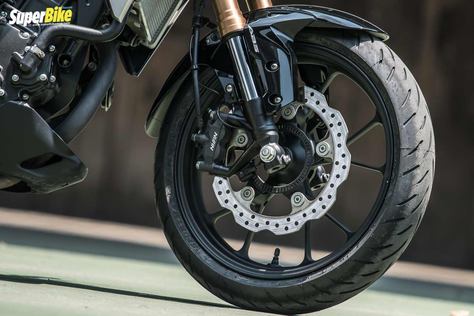 ในการขับขี่ครั้งนี้ทางเราจะให้ความสนใจเป็นพิเศษสำหรับการทดสอบช่วงล่างเพราะถือว่าเป็นจุดเด่น ของรถคันนี้สำหรับช่วงล่างด้านหน้าแบบ UPside-down ของ Showa ที่ถูกติดตั้งมาจากโรงงานที่มีเส้นผ่าศูนย์กลางขนาด 41 มม. และโช้คหลังที่เป็นแบบเดี่ยว สามารถปรับพรีโหลดได้ ถือว่าเป็นช่วงล่าง ที่ดีที่สุดในคลาสตอนนี้ ซับแรงกระแทรกได้เป็นอย่างดี แม้กระทั้งการเบรคหนักๆแบบฉุกเฉิน หรืออาจจะมีคนซ้อนเดินทางในชีวิตประจำวัน ก็ทำงานได้เป็นอย่างดี เหมาะสมอย่างยิ่งสำหรับการขับขี่บนถนนเมืองไทย