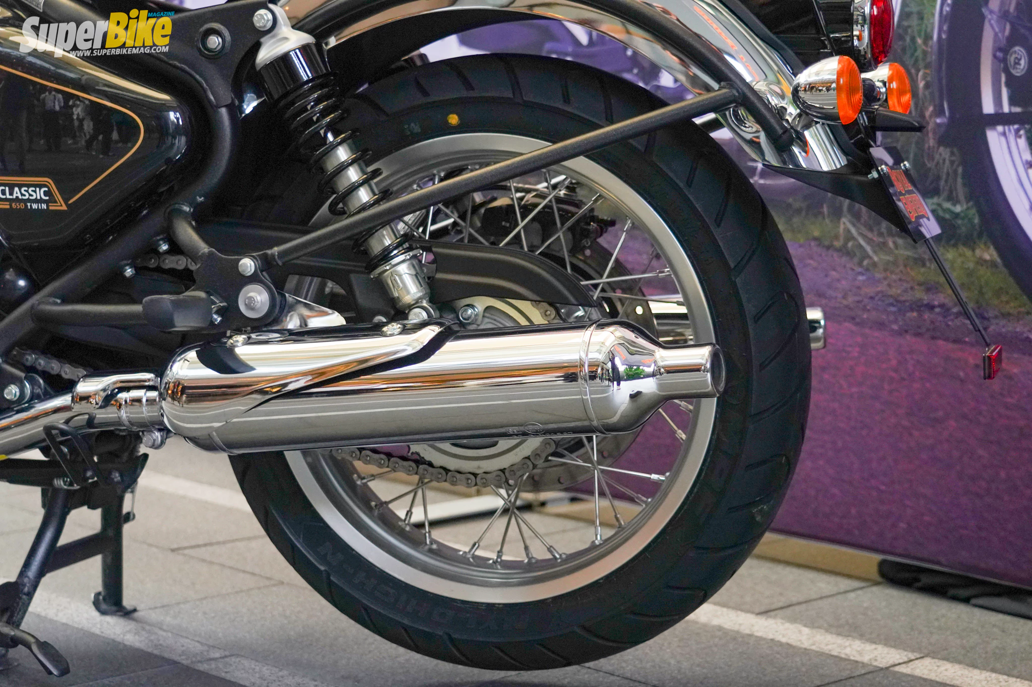 ผสมผสานโครงสร้างและตัวบอดี้รอบคันด้วยเนื้อวัสดุอลูมิเนียมเคลือบโครเมียมดูวิบวับเงางาม สะท้อนแสงสว่างจ้า เพลทสัญลักษณ์ RE ประดับความพรีเมียม ท่อไอเสียเนื้องานชุบโครเมียมแบบปลายคู่ให้สุ่มเสียงดุดันเฉพาะ และยังใช้เมนเฟรมแบบเดียวกับรุ่น 650 Meteor และ Shotgun รุ่นล่าสุด ทำให้ลักษณะการขับขี่นั้นดูง่ายดาย คลาสสิกและนั่งสบายในทุกท่วงท่าของการขับขี่