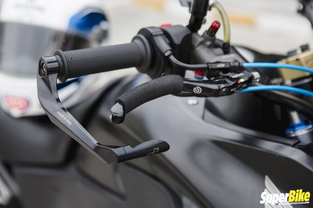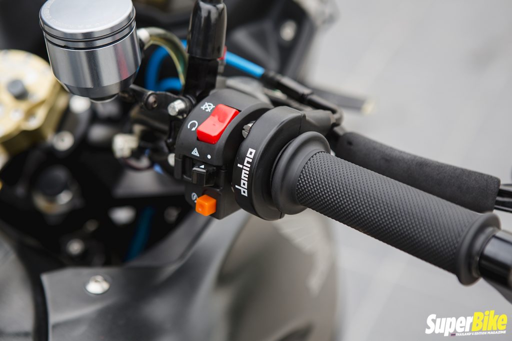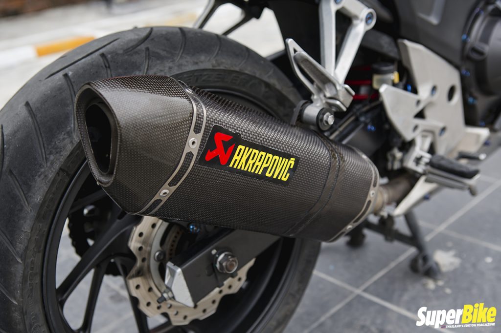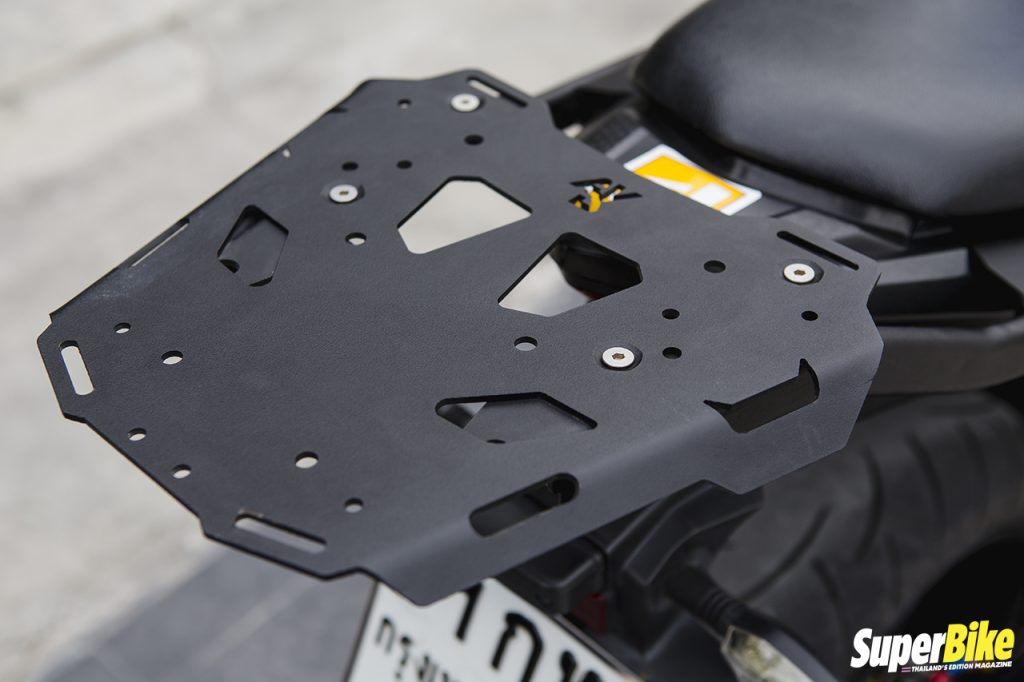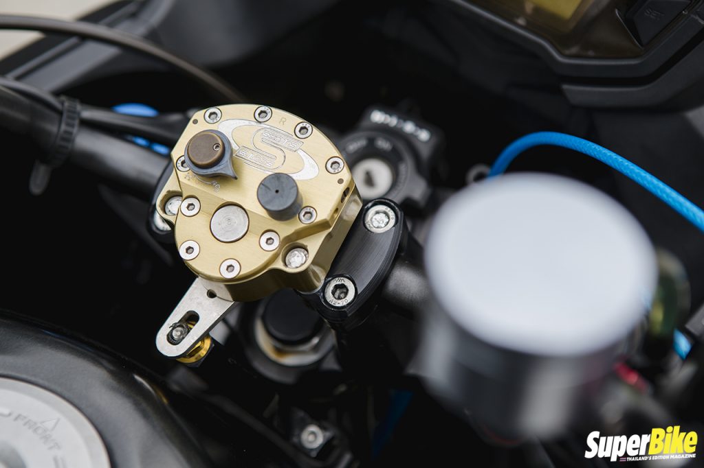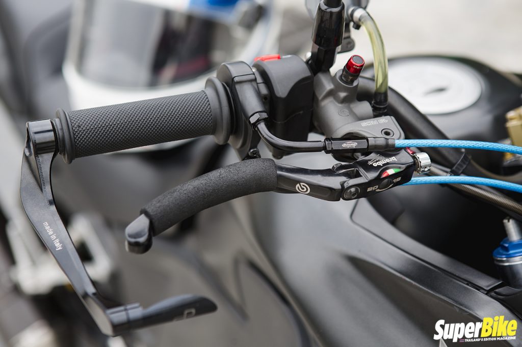 สำหรับแนวทางการแต่งของผม ก็จะเป็นการแต่งรถให้เข้ากับผู้ใช้ครับ โดยรถคันนี้ก็จะใช้งานทุกวัน เป็นส่วนหนึ่งของชีวิตเลยครับ ออกทริปด้วย ไปทุกที่ อยู่ด้วยกันตั้งแต่ตื่นจนเข้านอน คันนี้ชื่อเฉาก๊วย เพราะว่าสีดำทั้งคันครับ คุมโทนให้ดูเรียบๆ จะมองเรื่องเซฟตี้เป็นหลัก อย่างระบบเบรคก็ใช้ของ Brembo มีเปลี่ยนระบบคลัทช์เป็นคลัทช์น้ำมันให้นิ่มนวลขึ้น เวลารถติดก็จะสบายขึ้นครับ นอกจากนั้นก็มีเปลี่ยนล้อ เอาล้อจาก CB650 มาใส่ เพราะว่าอยากได้ระบบเบรคจากเดิมที่เป็นดิสก์เดี่ยวเปลี่ยนเป็นดิสก์คู่ เพื่อสมรรถนะในการเบรคที่ดีขึ้น แล้วก็จะได้เรื่องของลุค ได้ความบึกบึนของช่วงล่างเพิ่มขึ้นมาด้วยครับ มีแร็คหลังไว้มัดของตอบโจทย์เวลาออกท่องเที่ยว
