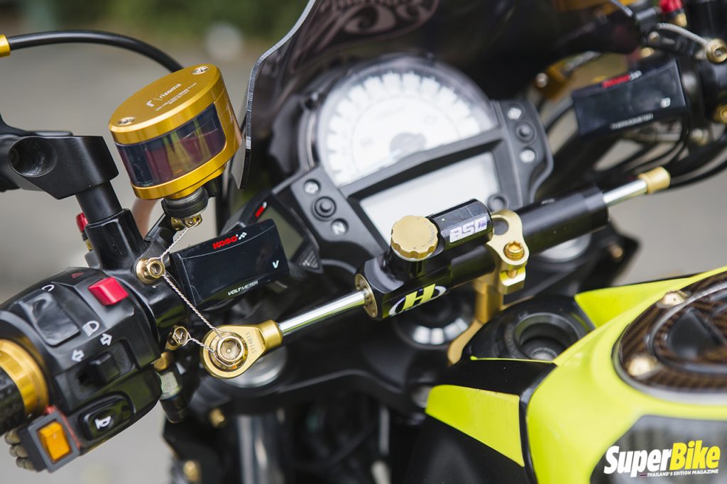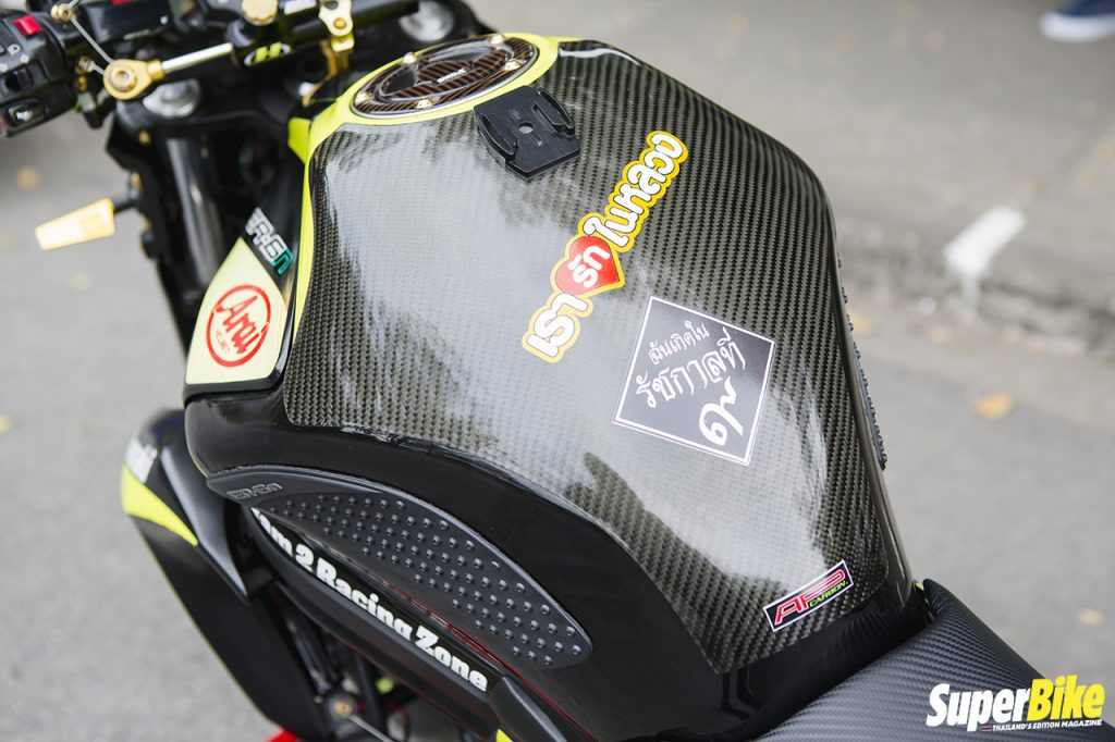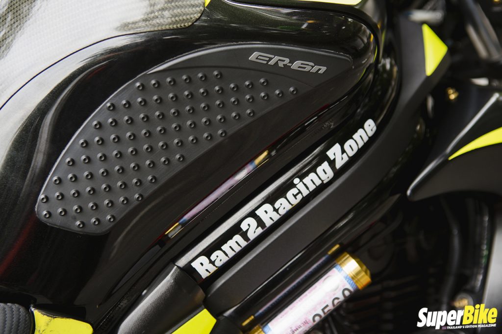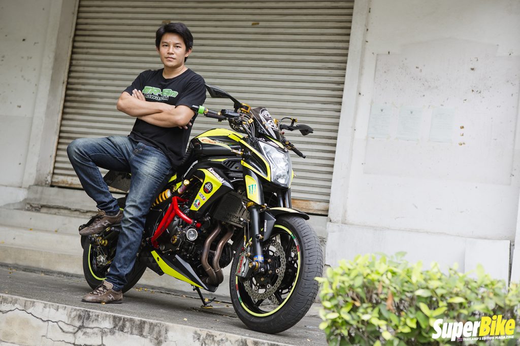 สไตล์การแต่ง ตัวผมเองเน้นว่าต้องเป็นของแต่งแท้ ที่ตรงรุ่นกับ ER-6n เท่านั้น จะไม่มีการแปลงจุดยึดอะไรต่างๆ รวมถึงใส่แล้วต้องมีประโยชน์และเสริมสมรรถนะรถเรา ต้องไม่มีผลเสียกับตัวรถ ไม่จำเป็นต้องแพง แต่ขอให้มีคุณภาพ ส่วนของแต่งที่ชอบในตัวรถคันนี้ที่สุดก็จะเป็นโช้คอัพครับ ทั้งหน้าที่เปลี่ยนสปริงเป็นของ Hyperpro และหลังที่ใช้ของ Ohlins เพราะรู้สึกว่าเปลี่ยนแล้วเห็นผลต่อการขับขี่จริง สำหรับรถคันนี้เสมือน ม้าคู่ใจของผม ไปกับผมทุกที่ไม่เคยทรยศ แต่ก็มีชื่อที่เพื่อนๆ เรียกกันว่า ฟ้าลั่น น่าจะเพราะว่าท่อดังด้วย