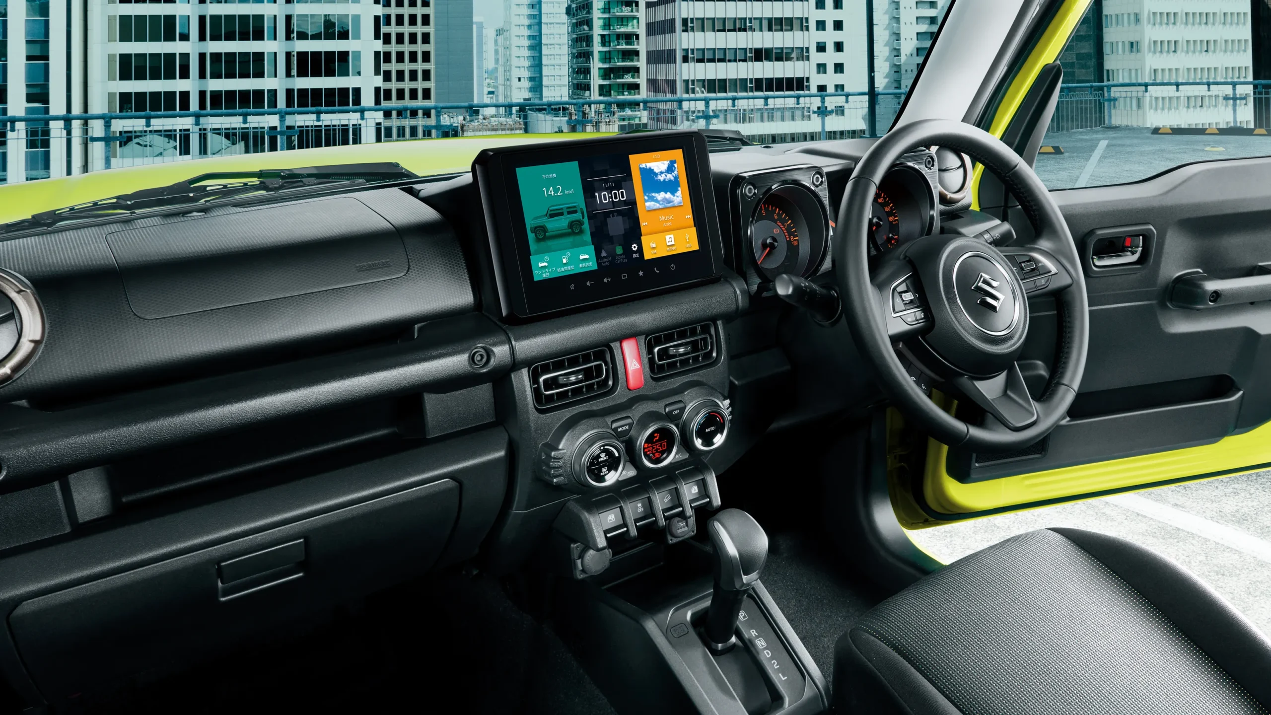 ในส่วนของความบันเทิง Suzuki Jimny Sierra 2026 ได้ทำการเปลี่ยนหน้าจออินโฟเทนเมนต์ใหม่เป็นขนาด 9 นิ้ว (ในรุ่น High Trim) ซึ่งให้ความละเอียดที่คมชัดขึ้นและรองรับการเชื่อมต่อ Wireless Apple CarPlay และ Android Auto ช่วยให้ผู้ขับขี่ไม่ต้องรำคาญกับสายเชื่อมต่ออีกต่อไป รวมถึงการปรับปรุงหน้าจอแสดงผลข้อมูลการขับขี่แบบสีบนมาตรวัดให้แสดงค่าต่างๆ ได้ละเอียดมากขึ้น