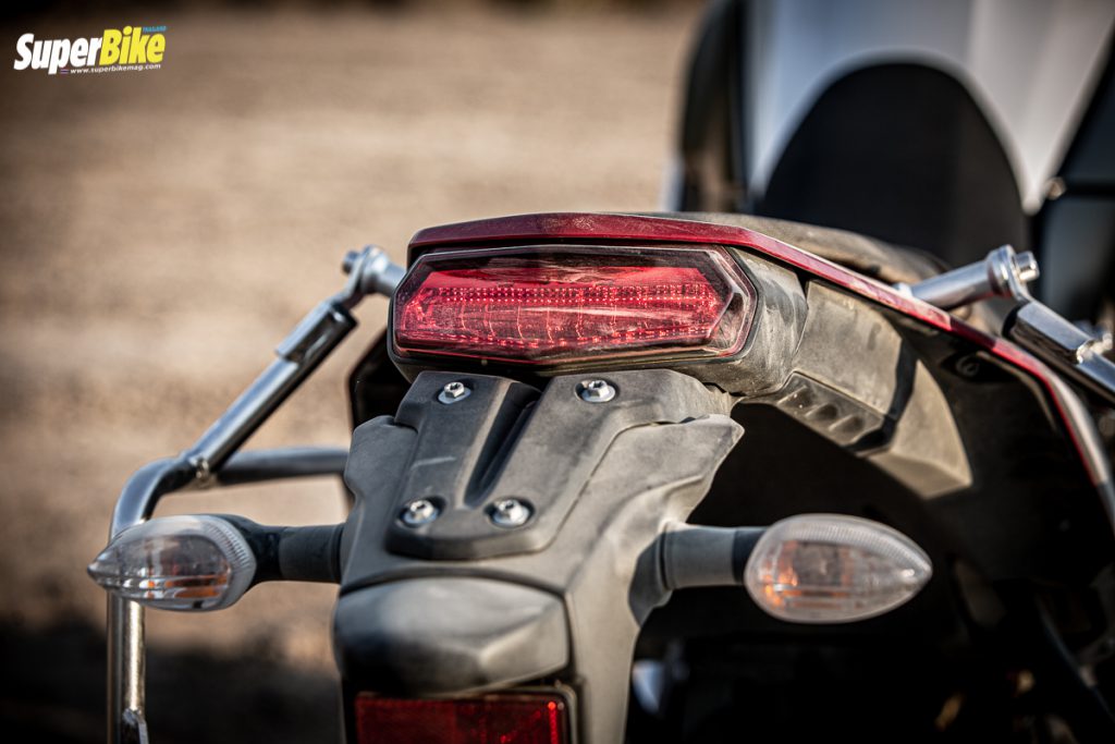 ตัวรถออกแบบมามีรูปทรงที่ค่อนข้างไปทางสูงและเพรียวให้อารมณ์เป็นรถที่พร้อมลุยทุกเส้นทาง และคล่องตัวไม่ดูเทอะทะเหมือนรถแอดเวนเจอร์ทั่วไป ถังน้ำมันออกแบบมาให้เพรียวยาวไปตามตัวรถ รับเข้ากับตัวเบาะตอนเดียวที่เป็นแบบราบไปจนถึงท้ายรถ ช่วยให้รถมีขนาดไม่ใหญ่เทอะทะ และเอื้อให้ควบคุมรถได้ดี จากการที่สามารถขยับตัวถ่ายน้ำหนักเพื่อบาลานซ์รถได้ง่าย