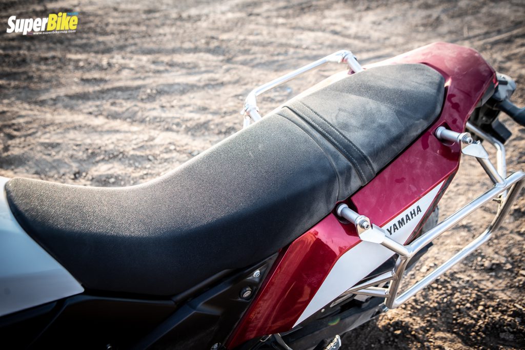 ตัวรถนั้นมีความสูงพอสมควร แต่ตัวเบาะมีรูปทรงเรียวยาว ให้ท่านั่งสบาย สามารถยืนและขยับสะโพก เพื่อใช้ให้การทรงตัว เลี้ยว หรือแม้กระทั้งการยืนขี่ ที่ทำให้รูปสึกได้เลยว่าเอาหน้าขาหนีบถัง ทรงตัวได้อย่างมั่นใจ รวมไปถึงผิดของตัวเบาะก็มีความหยาบพอสมควร แล้วเราเจอะโคลนหรือน้ำจะไม่ลื่นหลุดจากตัวรถได้ง่ายๆ ฐานล้อสั้น ทำให้ขับขี่เข้าโค้งได้ง่ายยิ่งขึ้น สำหรับใครถ้าจะมีคนซ้อนหรือจะเพิ่มปี๊บหลัง ควรปรับความแข็งของสปริงเพิ่มอีกสักหน่อย ท้ายจะได้ไม่ห้อย และตอบสนองได้ดียิ่งขึ้น