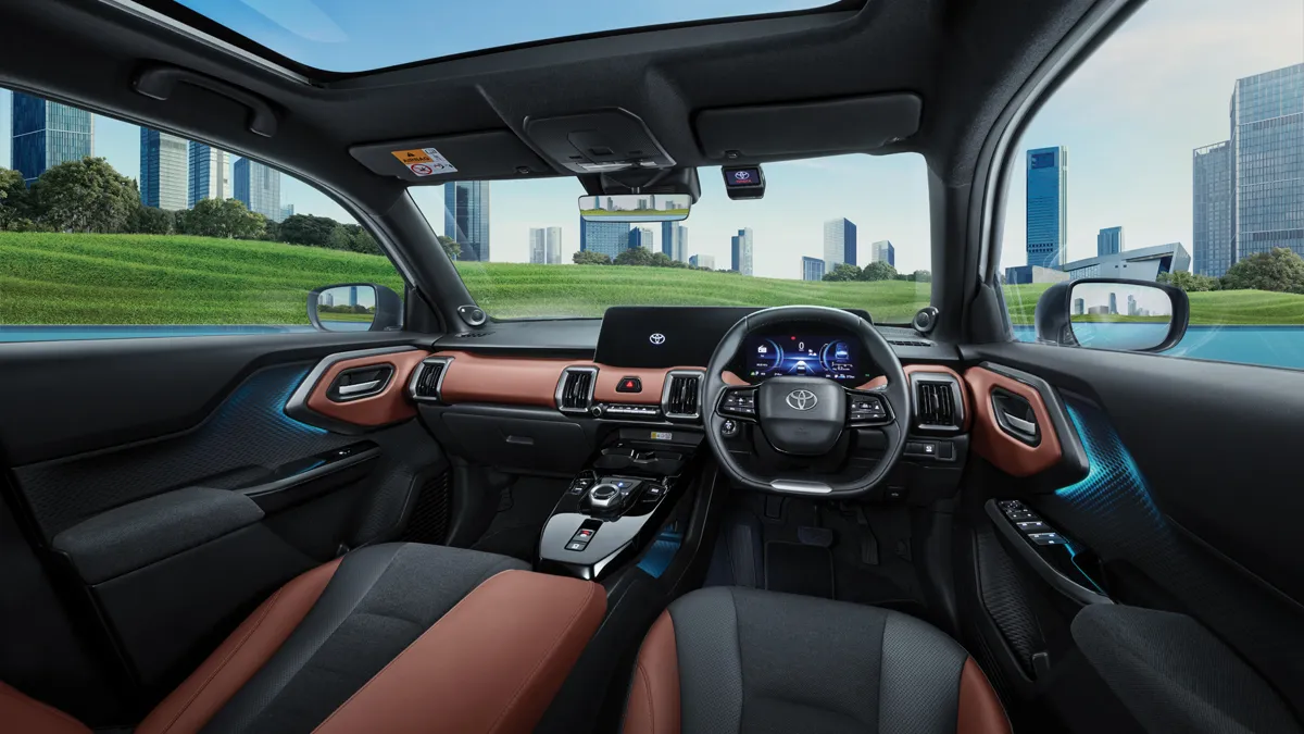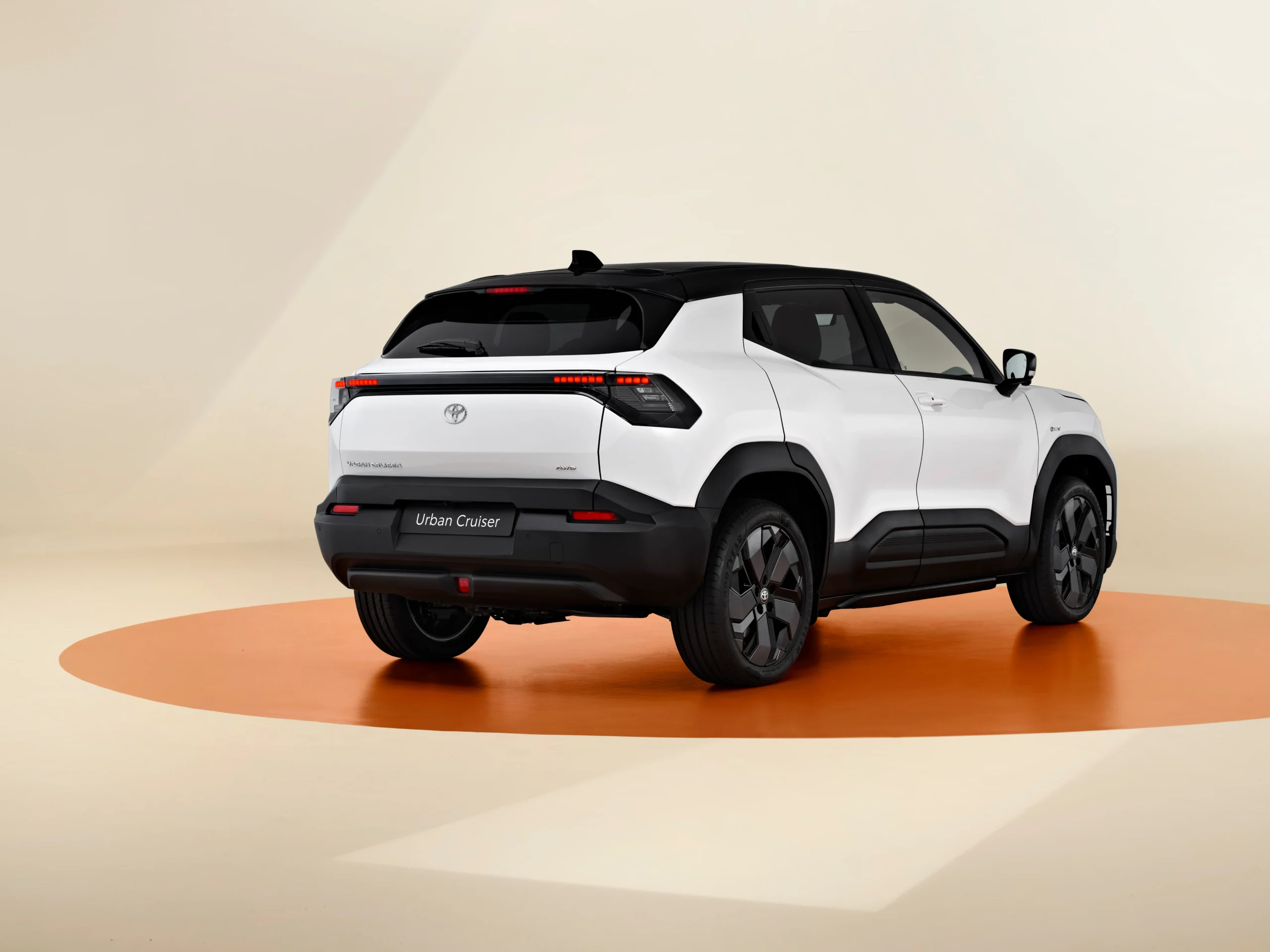 Toyota Urban Cruiser EV ภายนอกของ Urban Cruiser EV โดดเด่นด้วยดีไซน์ด้านหน้าแบบ Hammerhead (หัวฉลาม) ซึ่งเป็นเอกลักษณ์ใหม่ของรถไฟฟ้าในตระกูล bZ เสริมความแกร่งด้วยกันชนล่างดีไซน์ดุดันและไฟท้ายแบบ Combination Lamp รูปทรงทันสมัย ภายในห้องโดยสารเน้นความพรีเมียม แดชบอร์ดออกแบบใหม่พร้อมไฟ Ambient Light ที่ปรับได้ถึง 12 สี มาพร้อมหลังคา Panoramic Roof ที่ช่วยให้ห้องโดยสารดูโปร่งกว้าง และหน้าจอ Head Unit ขนาด 10.1 นิ้ว รองรับการเชื่อมต่อครบครัน