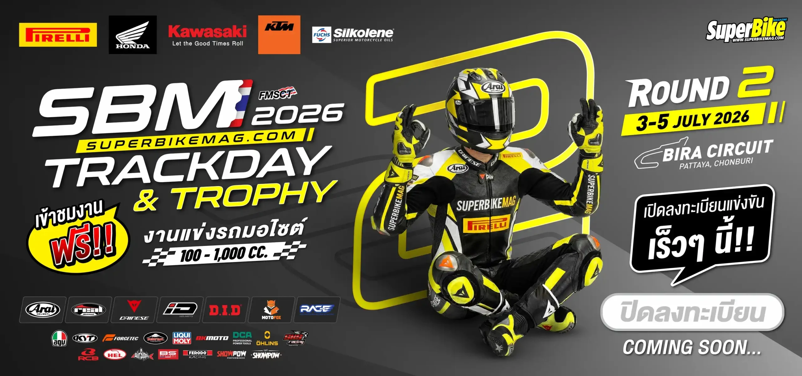 แทรคเดย์ กิจกรรมที่จัดขึ้นเพื่อเปิดโอกาสให้ผู้ใช้รถจักรยานยนต์ขนาด 150cc – 1000cc ขึ้นไป ได้เข้าร่วมการฝึกซ้อมขับขี่และแข่งขันในสนามแข่งจริง ภายใต้บรรยากาศที่ ปลอดภัย สนุกสนาน และเป็นกันเอง เหมาะสำหรับทั้งมือใหม่และผู้ที่อยากพัฒนาทักษะการขับขี่ในระดับที่สูงขึ้น ภายในงานยังมีการแข่งขันรูปแบบ Simulator Race ซึ่งจำลองการแข่งขันจริง เพื่อให้นักแข่งมือใหม่ได้ทดลอง สัมผัสประสบการณ์แข่งขันอย่างจริงจัง เป็นจุดเริ่มต้นที่ดีสำหรับการฝึกฝนสู่สนามแข่งขันระดับมืออาชีพในอนาคต