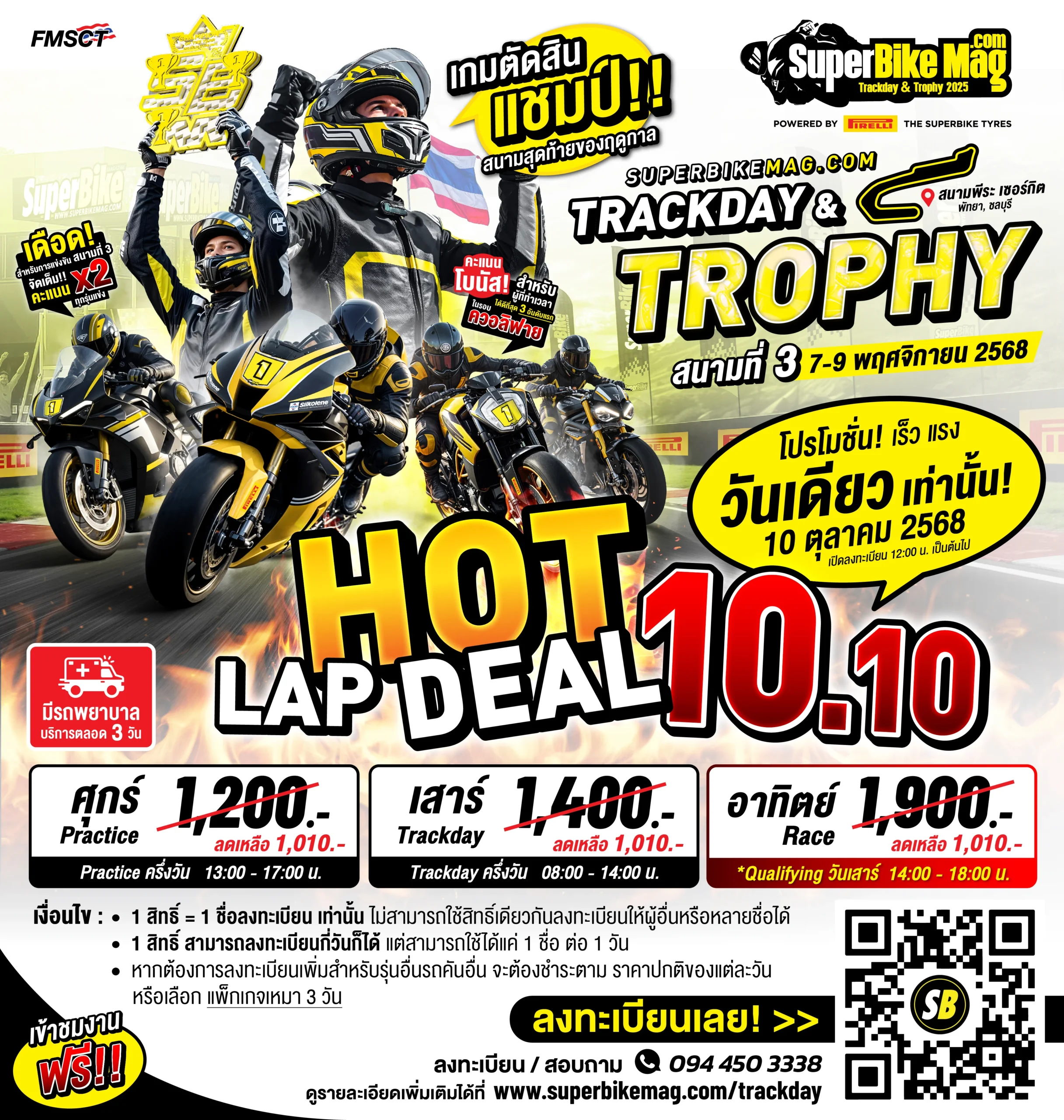 Saturday (Track Day): Regular price 1,400 THB (Now only 1,010 THB)