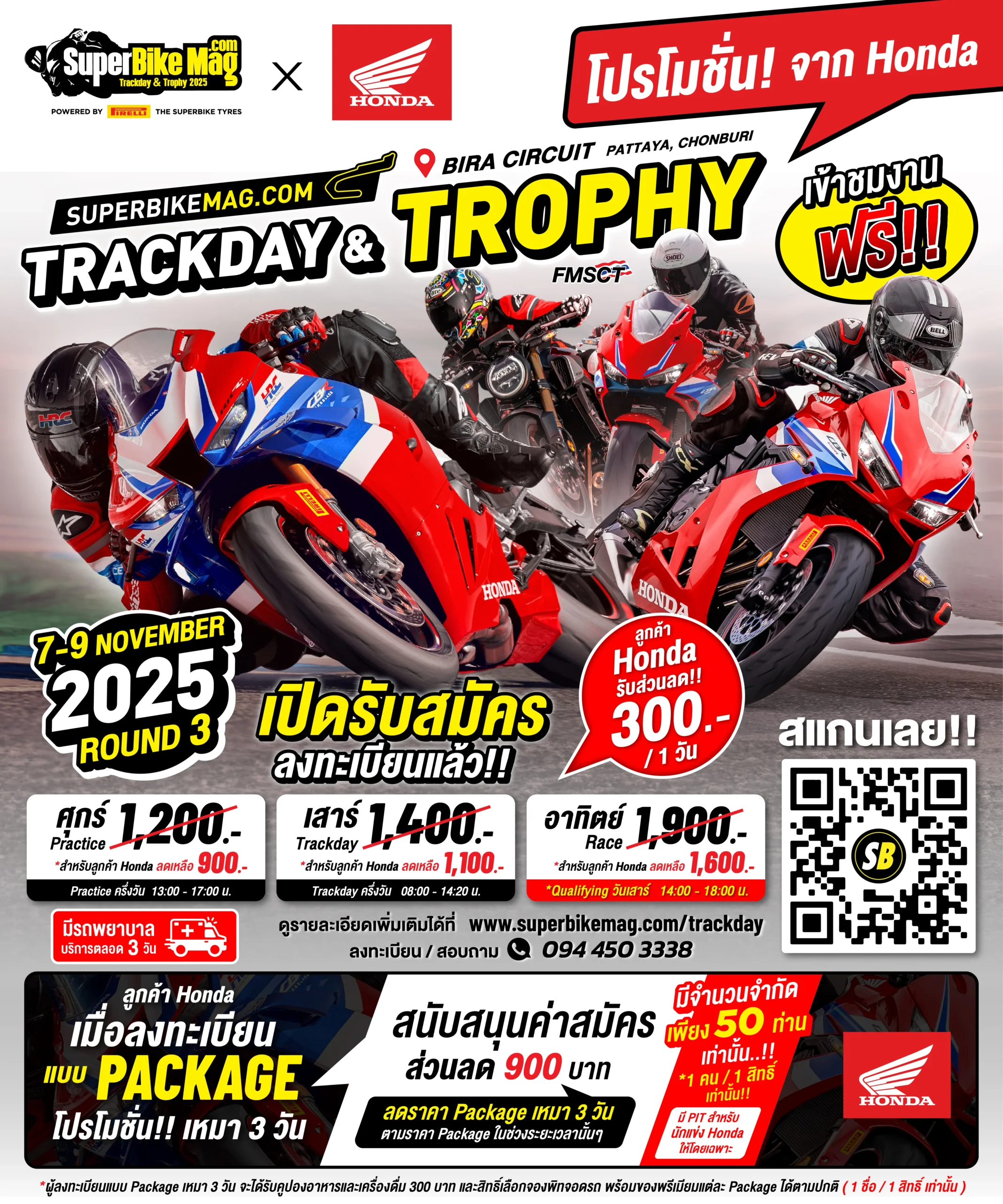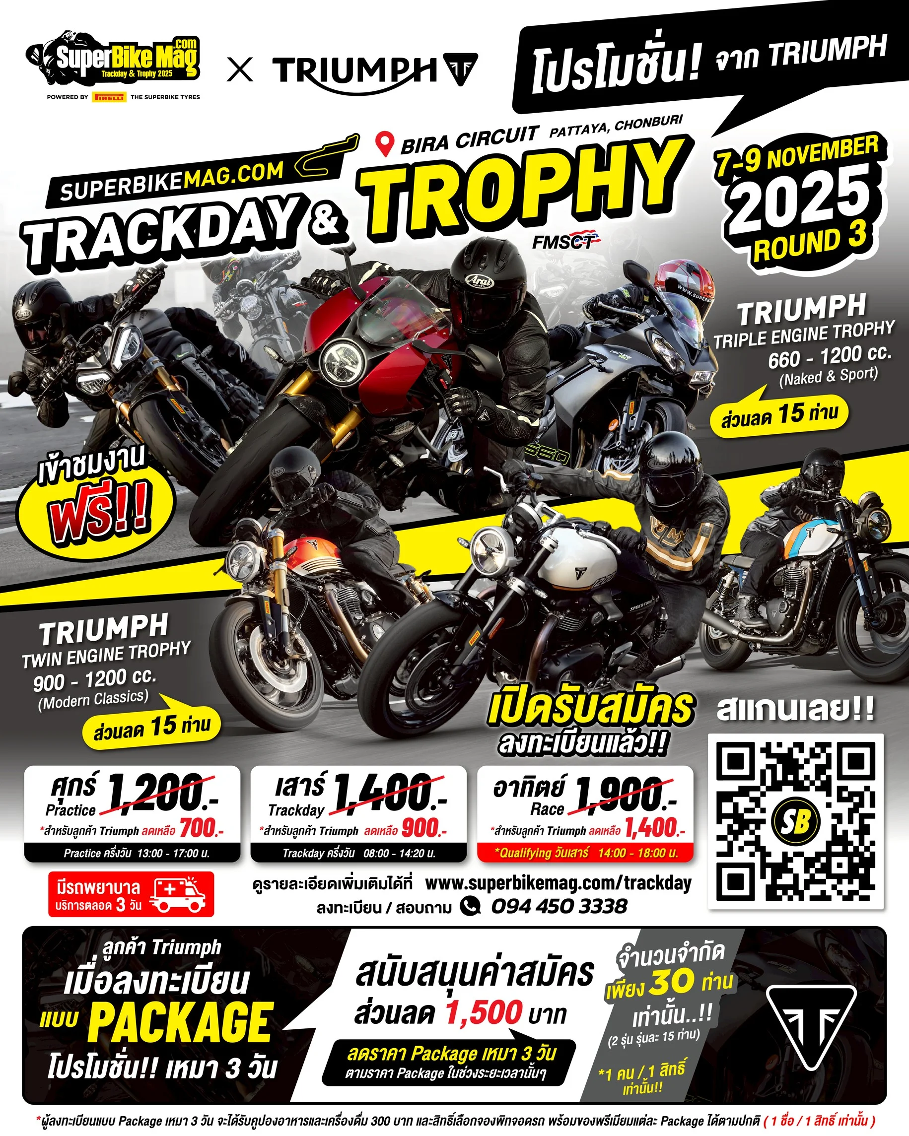 🎯 Saturday (Track Day): Regular price 1,400 → 1,300 Baht (Save 300 Baht)