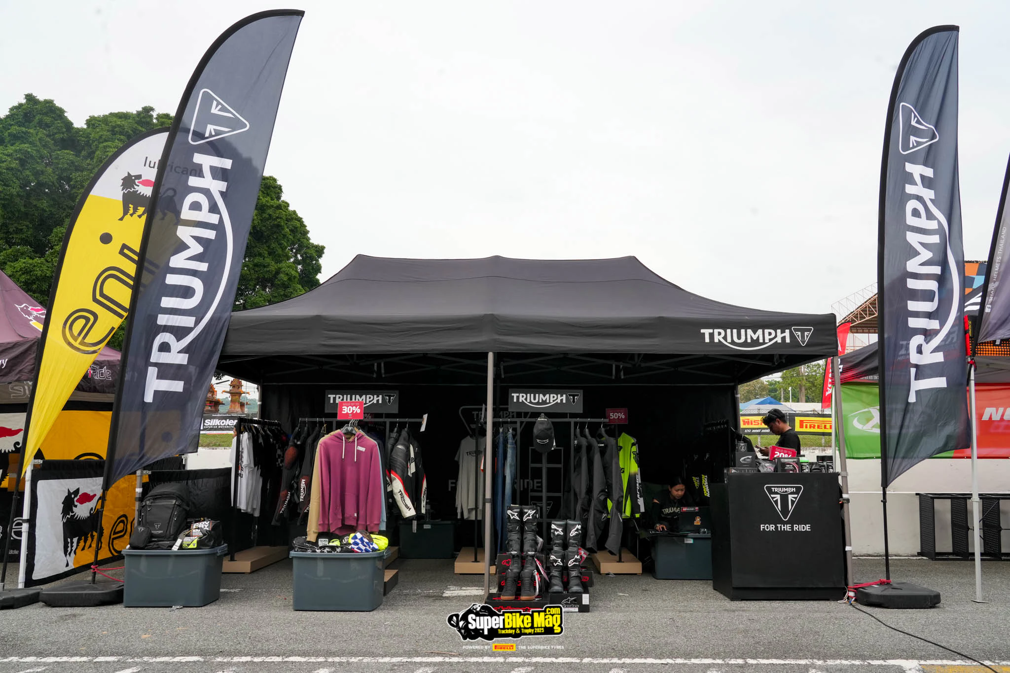 พร้อมซัพพอร์ตบริการด้วยทีมช่างชำนาญการณ์จากไทรอัมพ์คอยให้ดูแลอย่างใกล้ชิด และมีพิทบริการรองรับบริการ 2 พิทให้ปรับแต่งเซ็ตติ้งเต็มระบบ นอกเหนือจากนี้ทางแบรนด์ยังนำแอสเซสเซอรีมาจำหน่ายภายในงานทั้ง เสื้อการ์ด กางเกง รองเท้า ฮู้ดและอุปกรณ์อื่น ๆ ที่บูธรถจักรยานยนต์ไทรอัมพ์