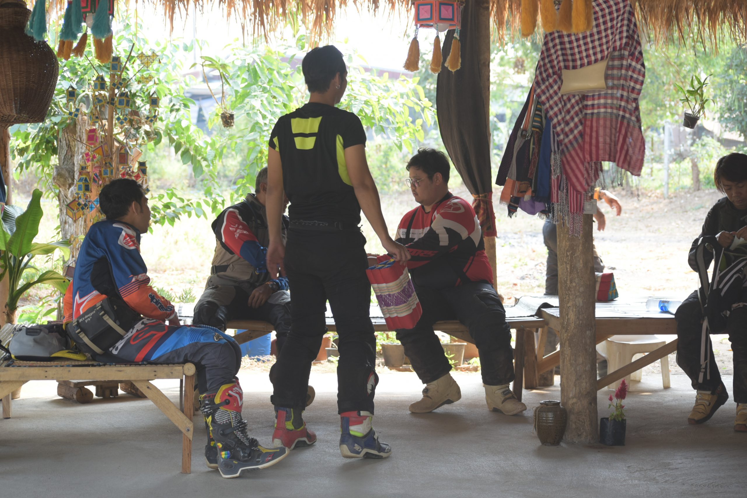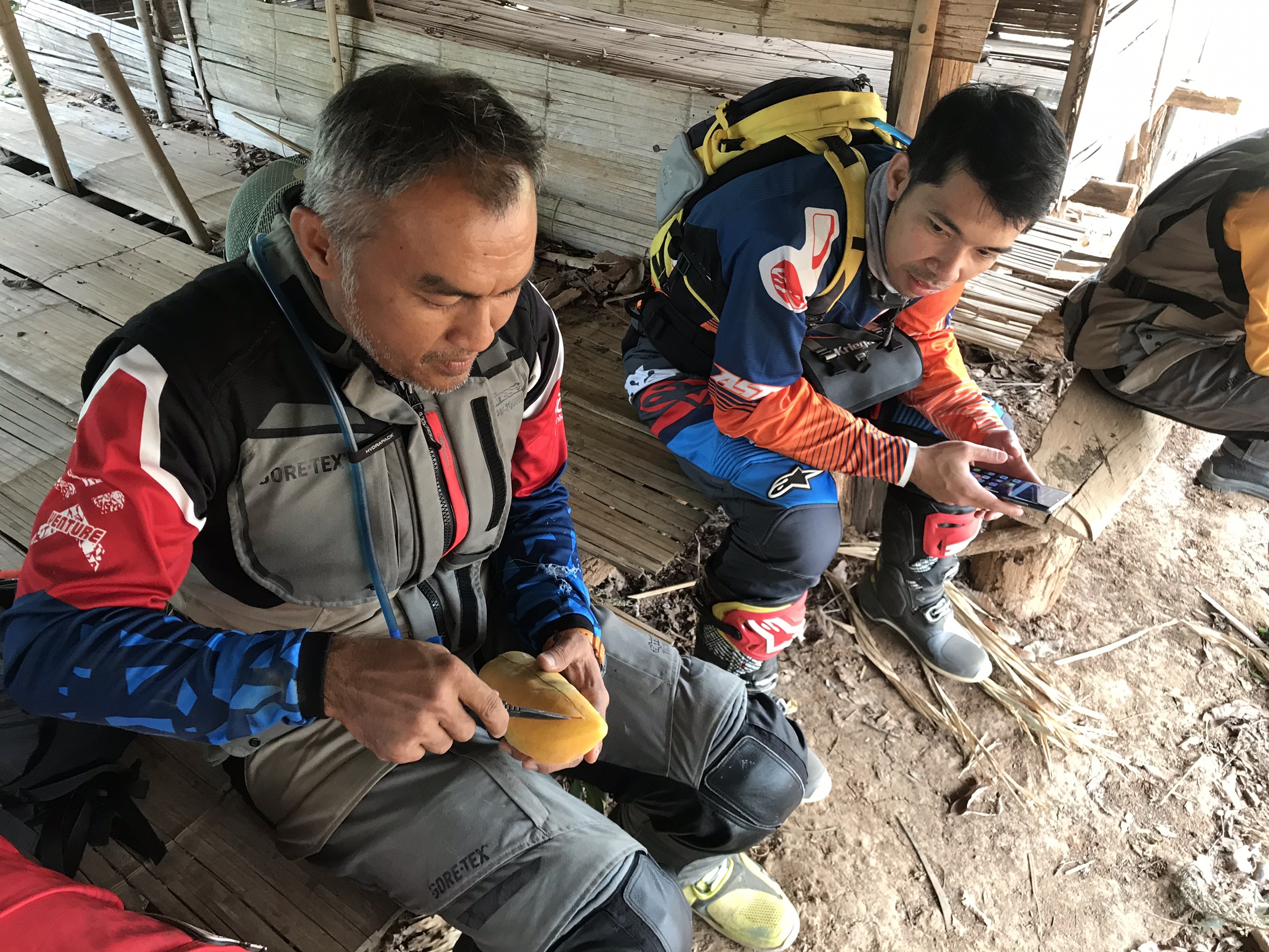 ระหว่างทางนั้นอุปสรรคสำคัญเลยคือฝุ่น ฝุ่นแดงๆ หนาเป็นนิ้วๆ ตีขึ้นมาตลอดเส้นทาง ทำให้ทัศนวิสัยไม่ค่อยดีนัก มีหินลอย หรือโขดหินบ้าง ถึงเที่ยงเราแวะพักกินข้าวกลางวันที่ ตชด.เชียงคาน เป็นร้านอาหารในเขตพื้นที่ของตชด. แต่ช่วงก่อนหน้านั้นก็มีเพื่อนง่วง ล่วงไปกันบ้าง ก็มีการจอดพัก จอดช่วยกันเป็นระยะสมกับเป็นทริปโดนเชือดจริงๆ
