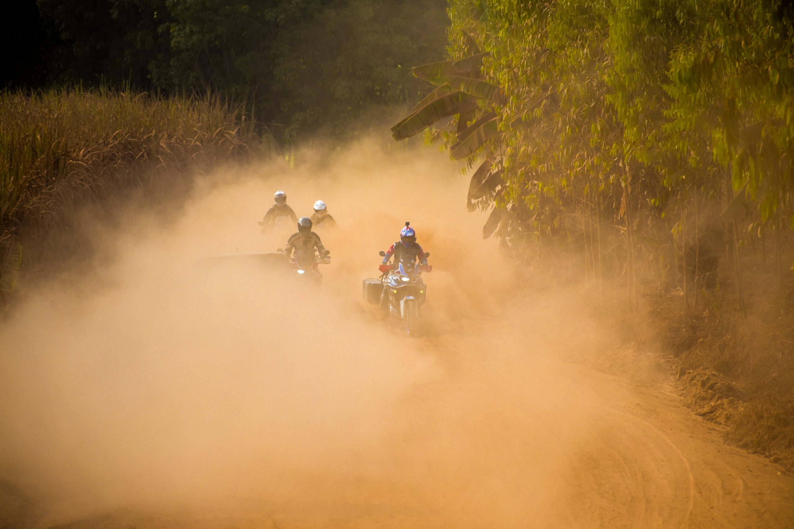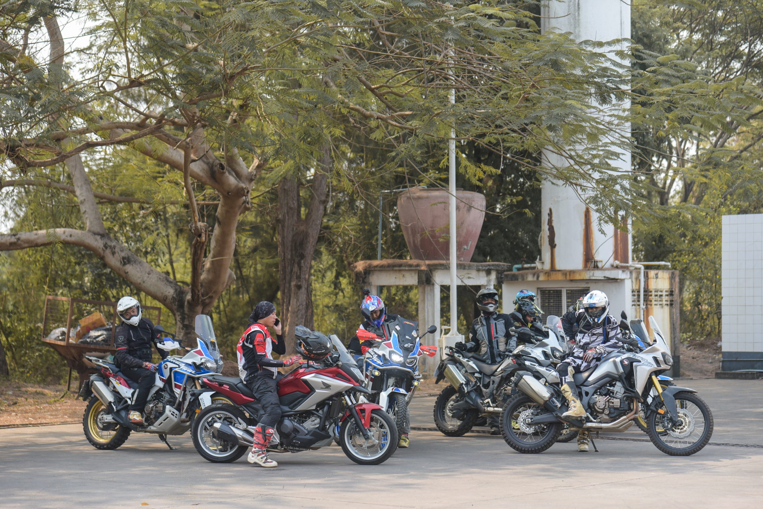 ทริปสายฝุ่นสุดโหดสุดมันทริปนี้เริ่มต้นสตาร์ทเส้นทางกันที่ Honda BigWing อุดรธานี โดยก่อนที่จะออกสตาร์ทพวกเราสื่อก็ไปเติมพลังด้วยอาหารมื้อเช้ากันที่ร้านราชาไก่กระทะก่อนจะมาฟังบรีฟจาก อาจารย์เล่ เจษฎางค์ โชตนา ผู้ที่เป็นทั้งมาร์แชลและผู้ฝึกสอนเทคนิคการขับขี่ในสไตล์แอดเวนเจอร์ให้กับพวกเรา โดยอาจารย์เล่จะบรีฟเกี่ยวกับเส้นทางที่เราจะต้องออกไปผจญภัยกันในวันแรกกันก่อน