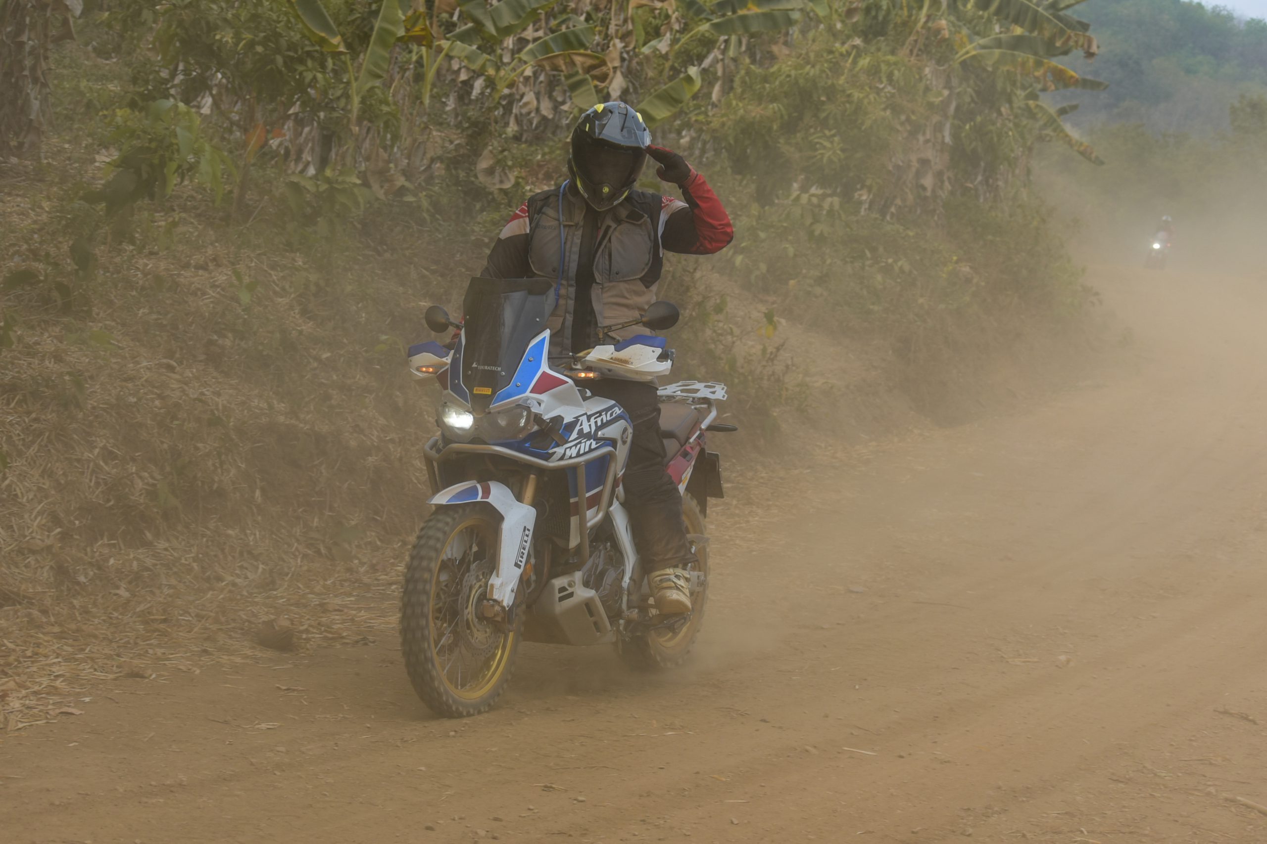 เช้าวันที่ 2 รับประทานอาหารเช้ากันที่โรงแรมและอาจารย์เล่ก็มาบรีฟให้ฟังถึงเส้นทางผจญภัยแบบลุยฝุ่นหนักๆ กันในวันนี้ โดยเป็นเส้นทางในอำเภอเชียงคาน โดยตัวผมวันนี้ได้ขี่เจ้า Honda Africa Twin L2 ซึ่งพร้อมลุยอยู่แล้ว (สื่อเจ้าอื่นๆ ก็จะได้รถรุ่นต่างๆ กันไป อาทิ Africa Twin L1 L2, CB500X และ X-ADV) เส้นทางในคราวนี้เรียกได้ว่าโหดจัดๆ คือขี่เข้าป่ากันไปเลย ไปกินมื้อเที่ยงกันในป่า ไม่ใช่ร้านอาหารแล้วคราวนี้