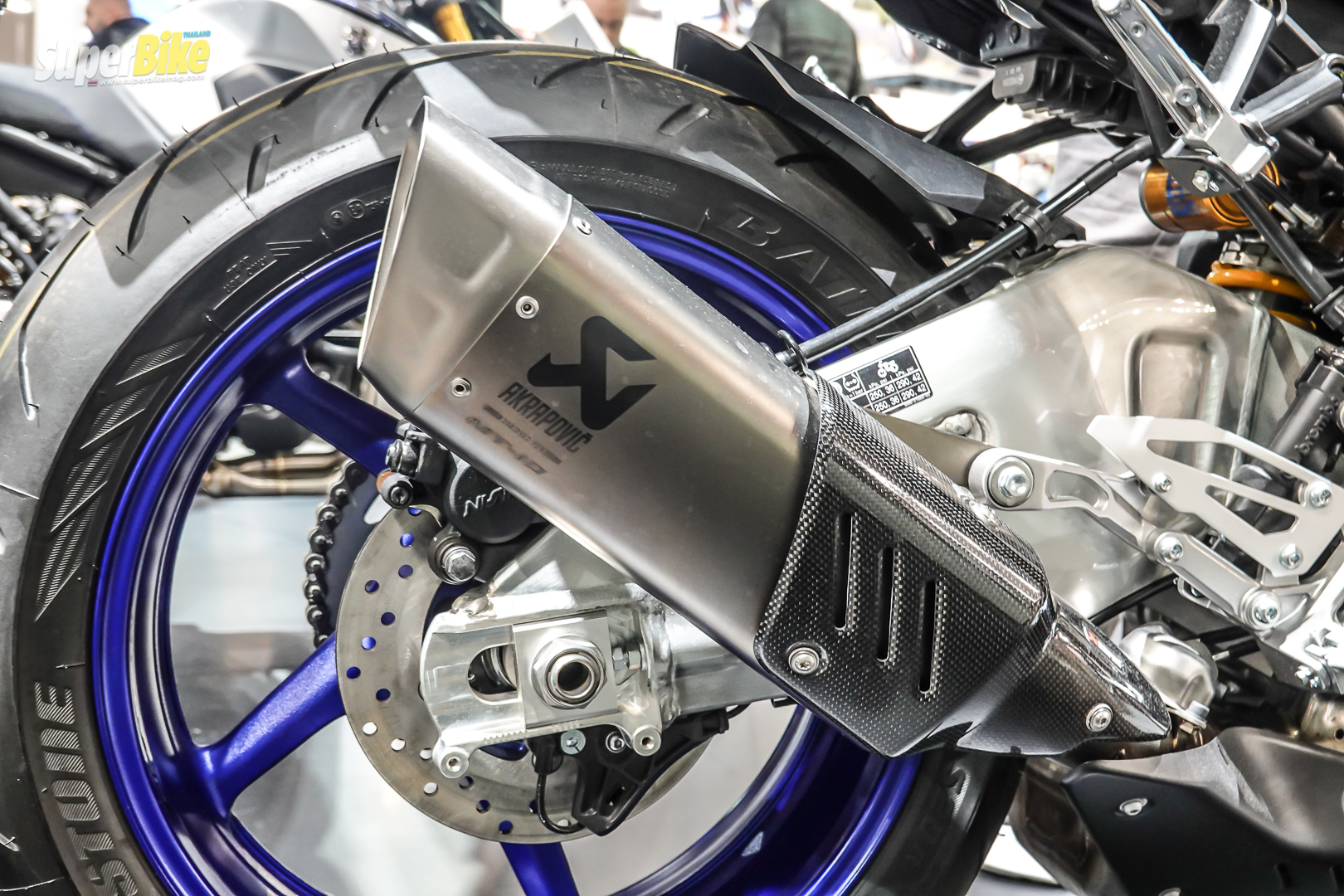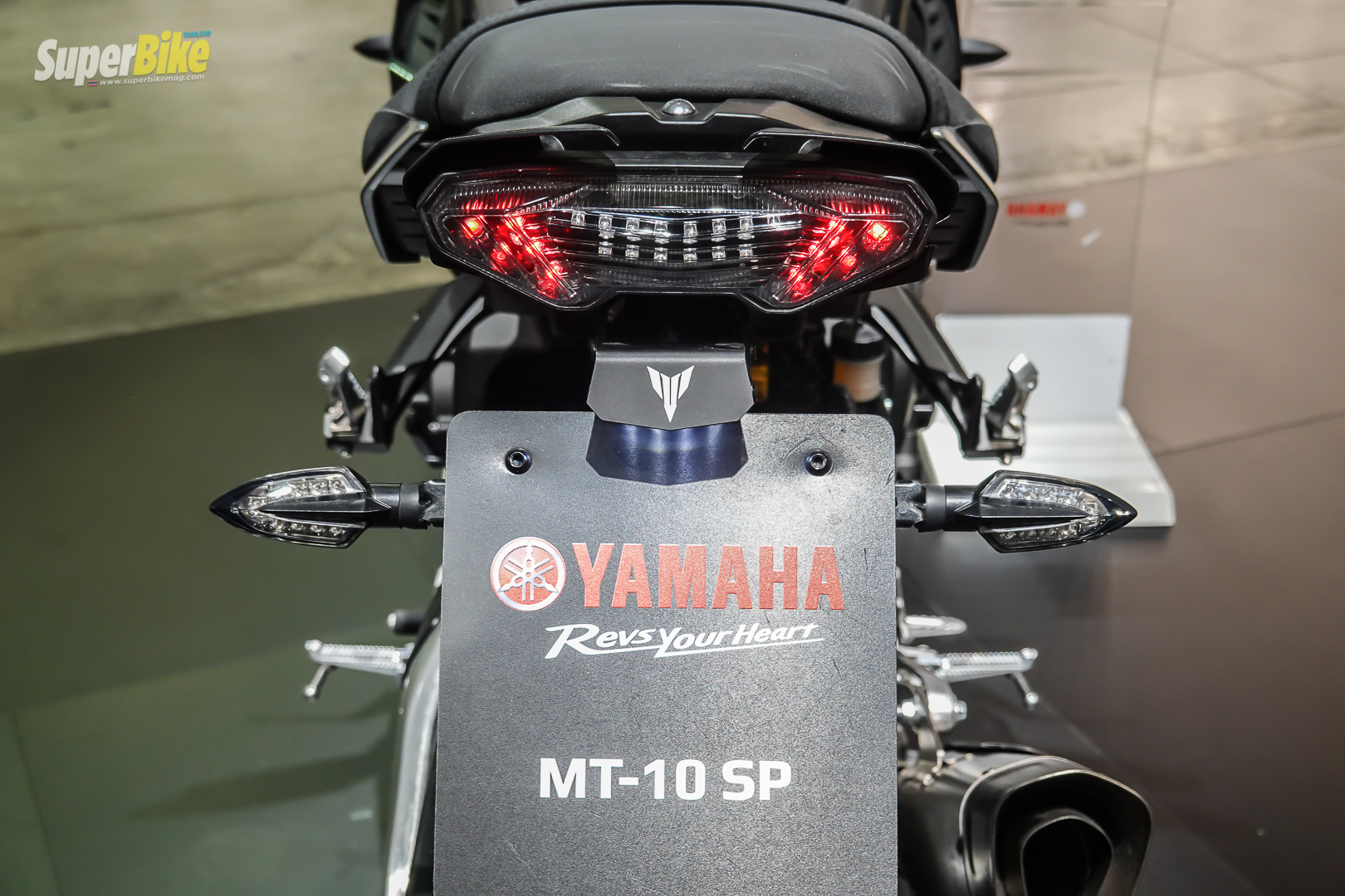 เบรคหลังเป็นแบบดิสเบรคขนาด 220 มิลลิเมตรจับด้วยคาลิปเปอร์ 1 พอร์ทของ Nissin ขนาดของวงล้อแม็กด้านหลังมีขนาด 17 นิ้ว ให้ยางสปอร์ตติดมาขนาด 190/55 ZR เสริมหล่อด้วยท่อ Akrapovic ที่เลเซอร์ MT-10 มาให้ด้วยเลยจากโรงงาน