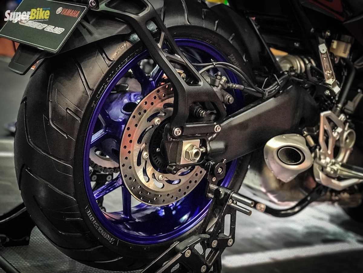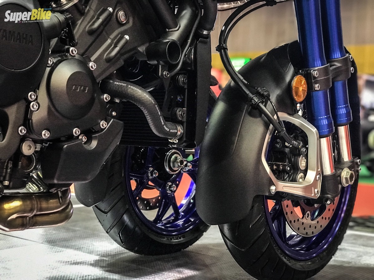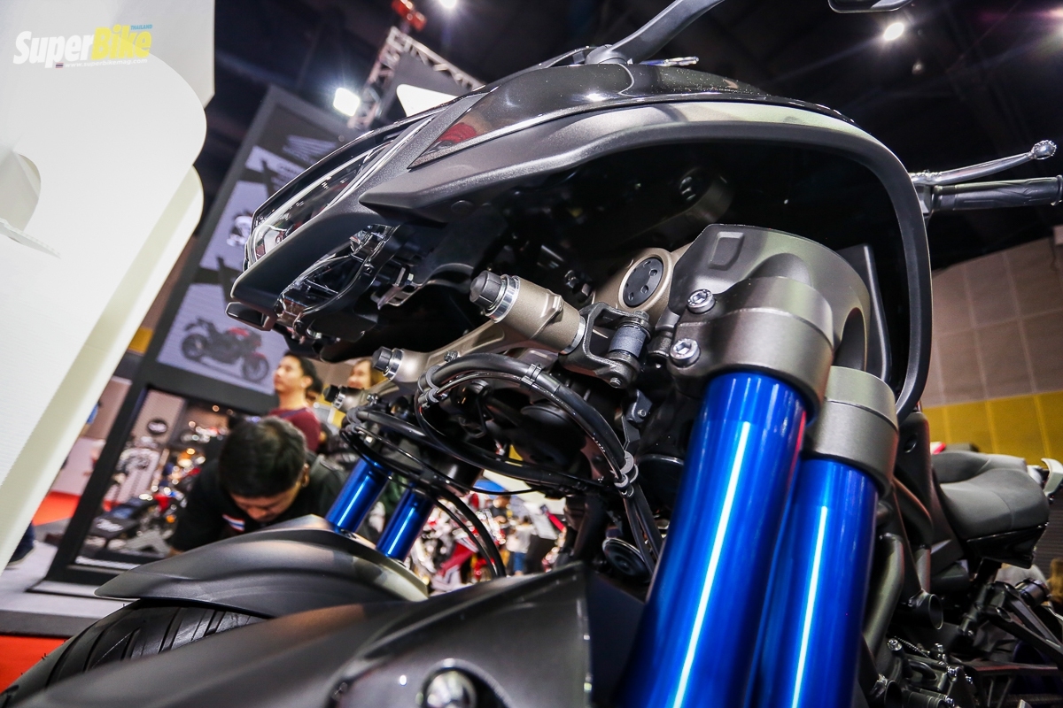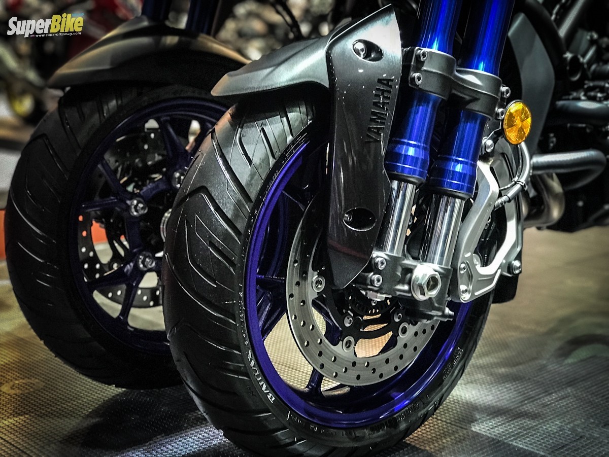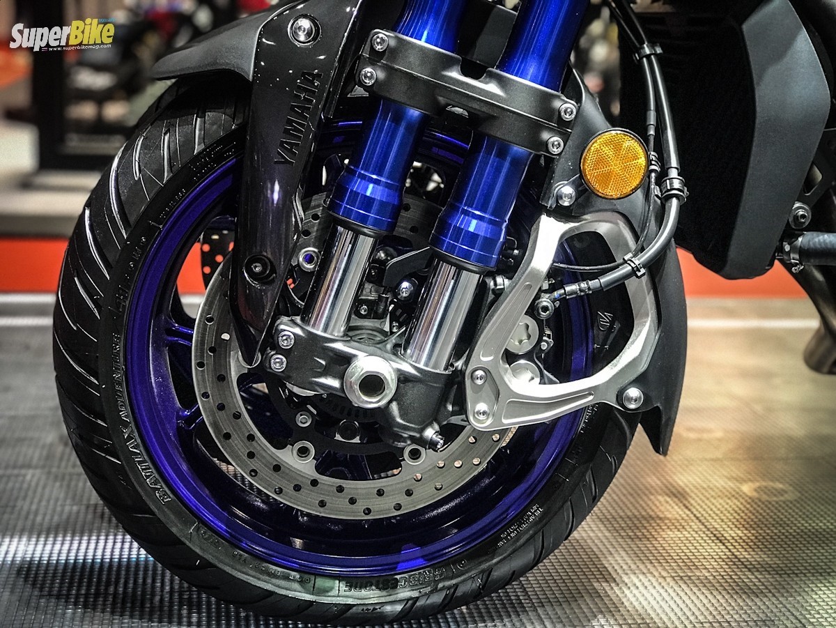 ช่วงล่างด้านหน้า เป็นบนระบบสั้นสะเทือนแบบ Double Up-side down ทั้งหมด 4 ต้น ซ้าย 2 ขวา 2 ที่ทำงานพร้อมกัน วงล้อด้านหน้าขนาด 15 นิ้ว มาพร้อมกับยางบริดจสโตน ขนาด 120/70 R15 ทั้งซ้ายละขวา หยุดความแรงด้วยคาลิเปอร์เบรคแบบ 4 พอร์ต ขนาดเส้นผ่าศูนย์กลางดิสเบรคคู่ 298 มม.